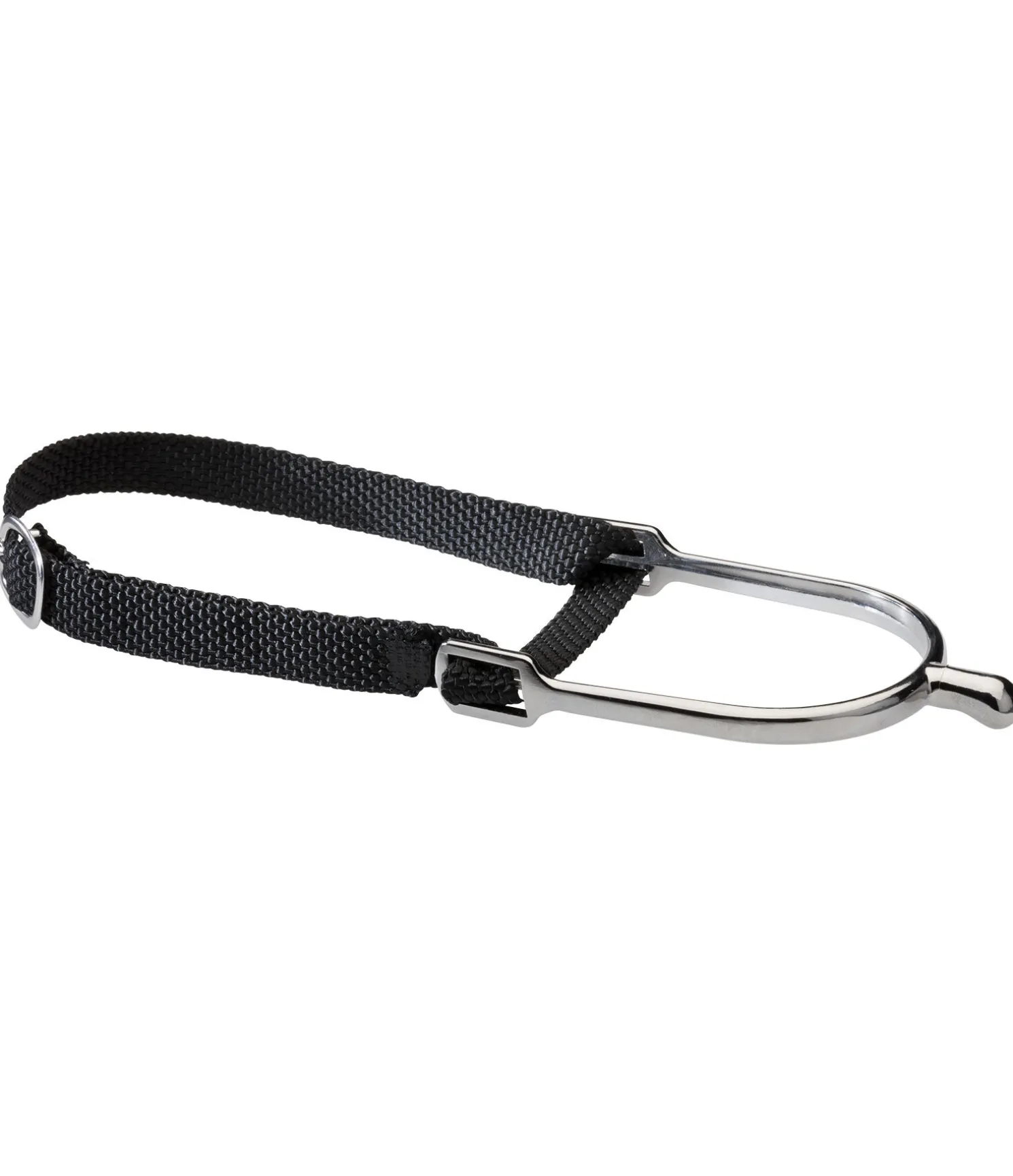 Éperons galvanisés, avec lanières en nylon. Noirs. Vendus par paire.