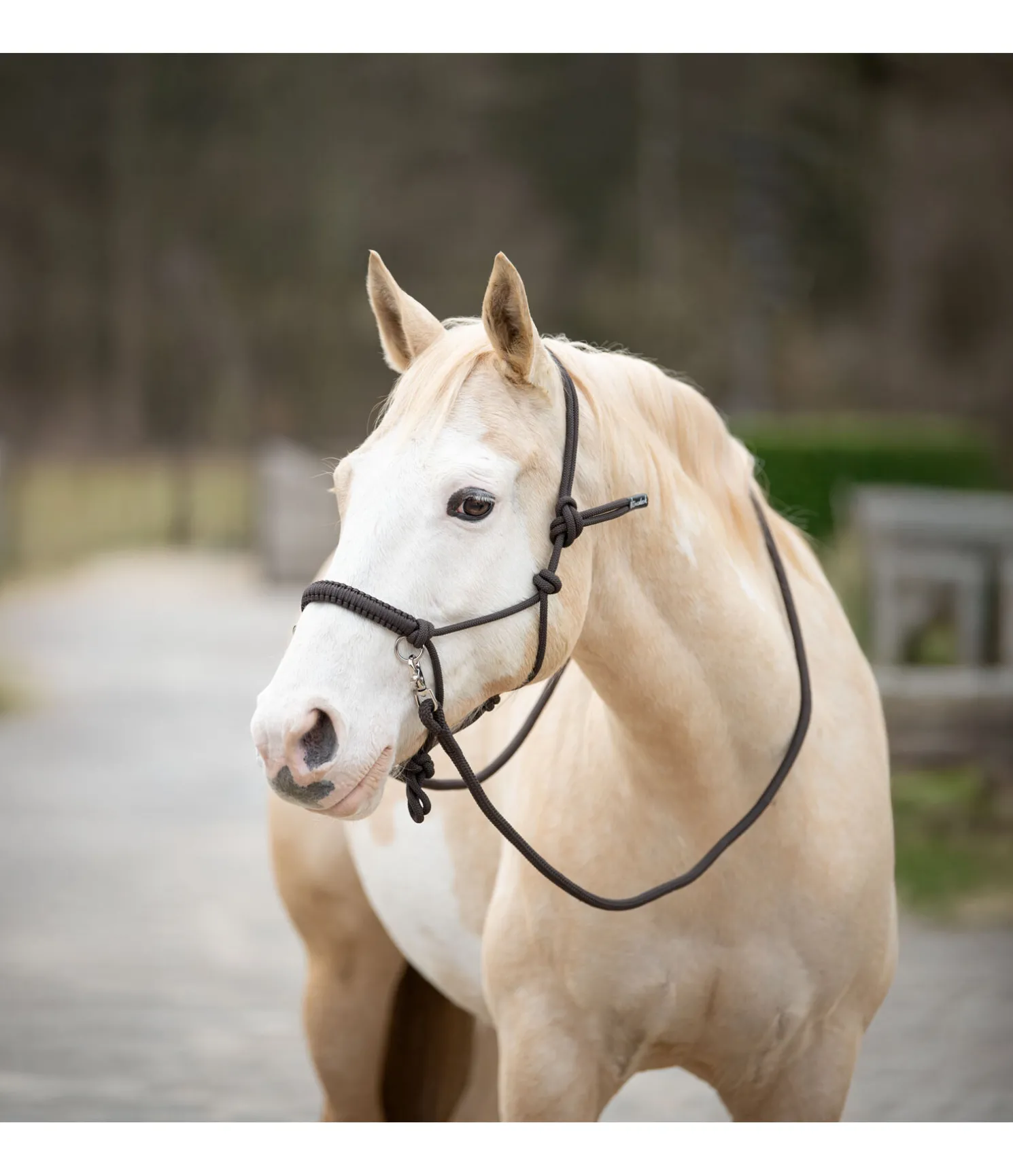 Licol à noeuds haut de gamme. Pour le travail au sol ou monté. En matière souple et résistante. Avec anneaux pour les rênes et muserolle tressée. Épaisseur de la corde 8 mm. Livré avec rênes à mousquetons et longe assorties. Longueur des rênes, mousquetons compris 2,6 m, épaisseur des rênes et de la longe 16 mm. Longueur de la longe 2,4 m.