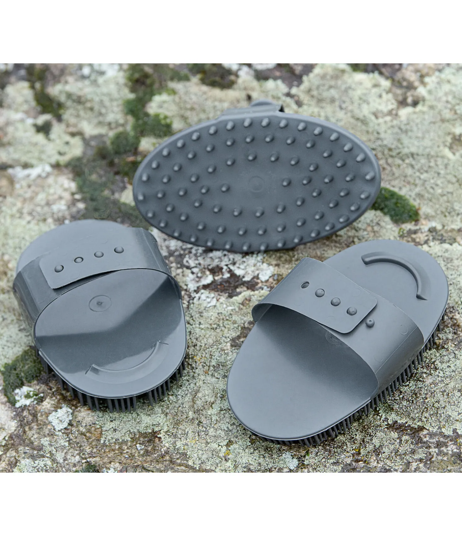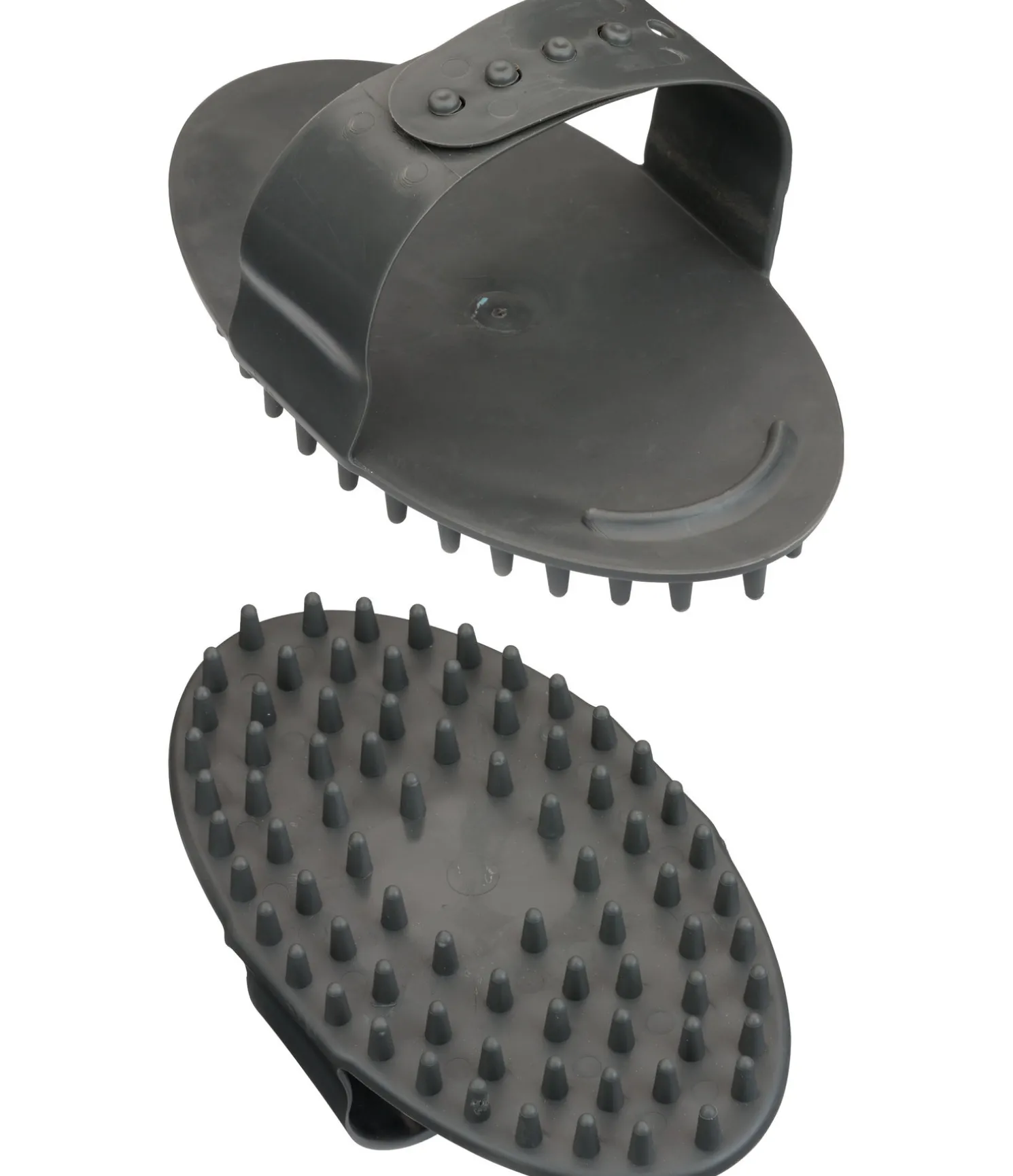 Étrille à picots très flexibles en plastique souple. Idéale pour le massage des chevaux et en période de mue. Le bord arrondi au niveau des doigts permet une prise en main optimale lors du pansage et fait gagner en efficacité. Avec dragonne ajustable. 16 x 9,5 cm.