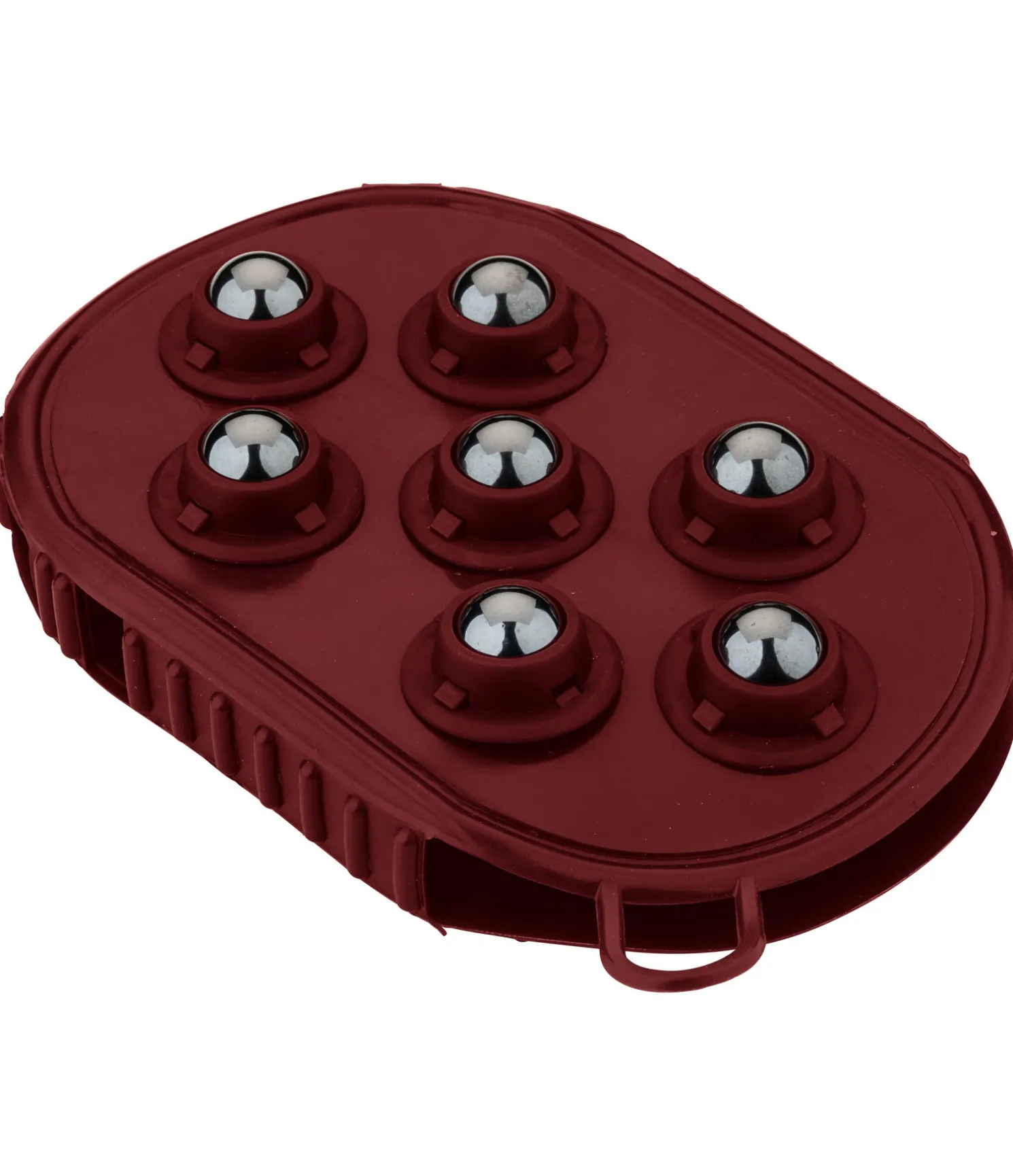 Avec billes de massage magnétiques sur une face et picots en caoutchouc sur l’autre face. 15,5 x 10,5 cm.