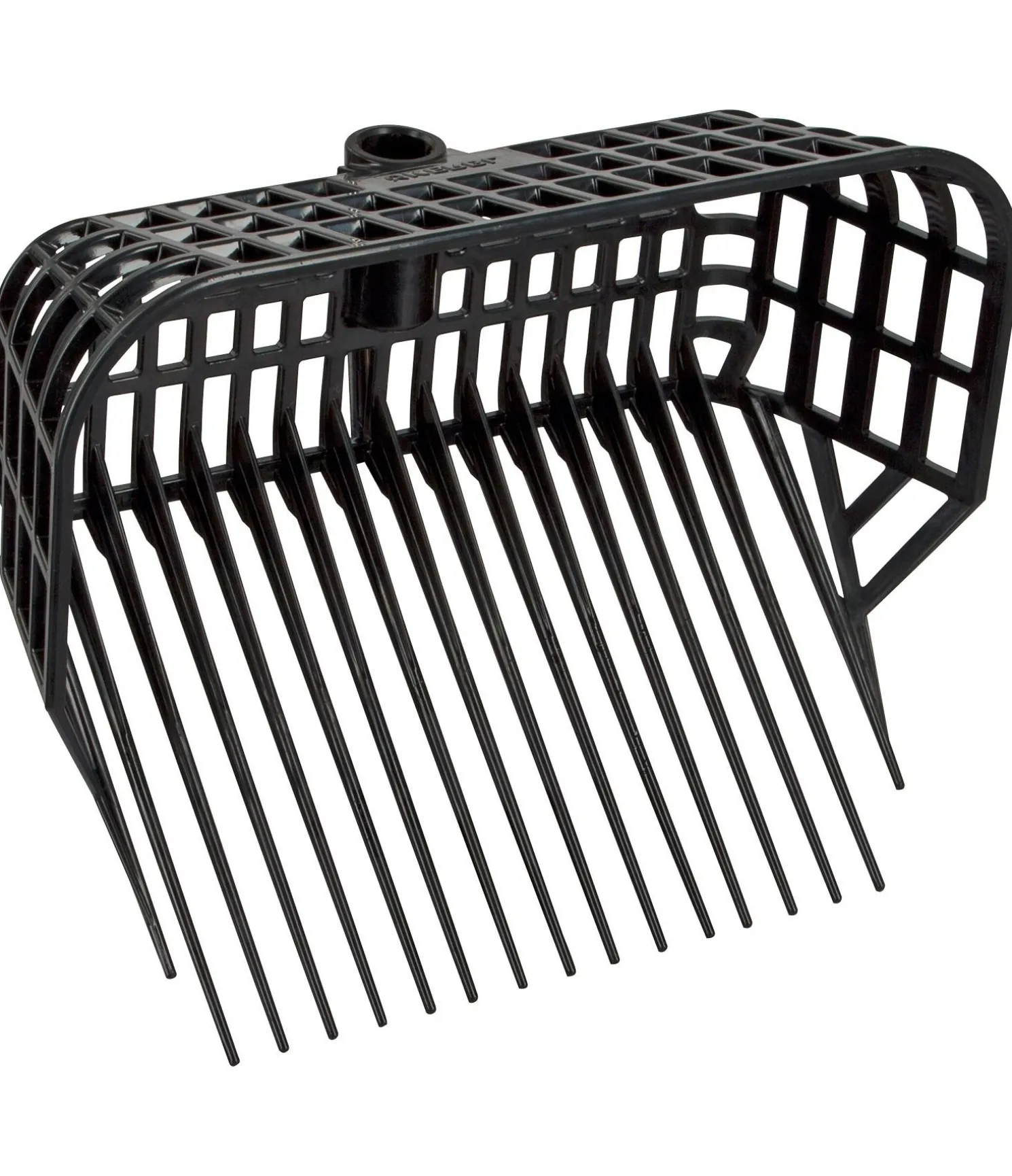 Fourche panier d’écurie avec bords très hauts pour plus d’efficacité. En plastique solide. 17 dents de 35 cm de long. Vendue sans manche. Manche assorti 450 414. Couleur : noir.
