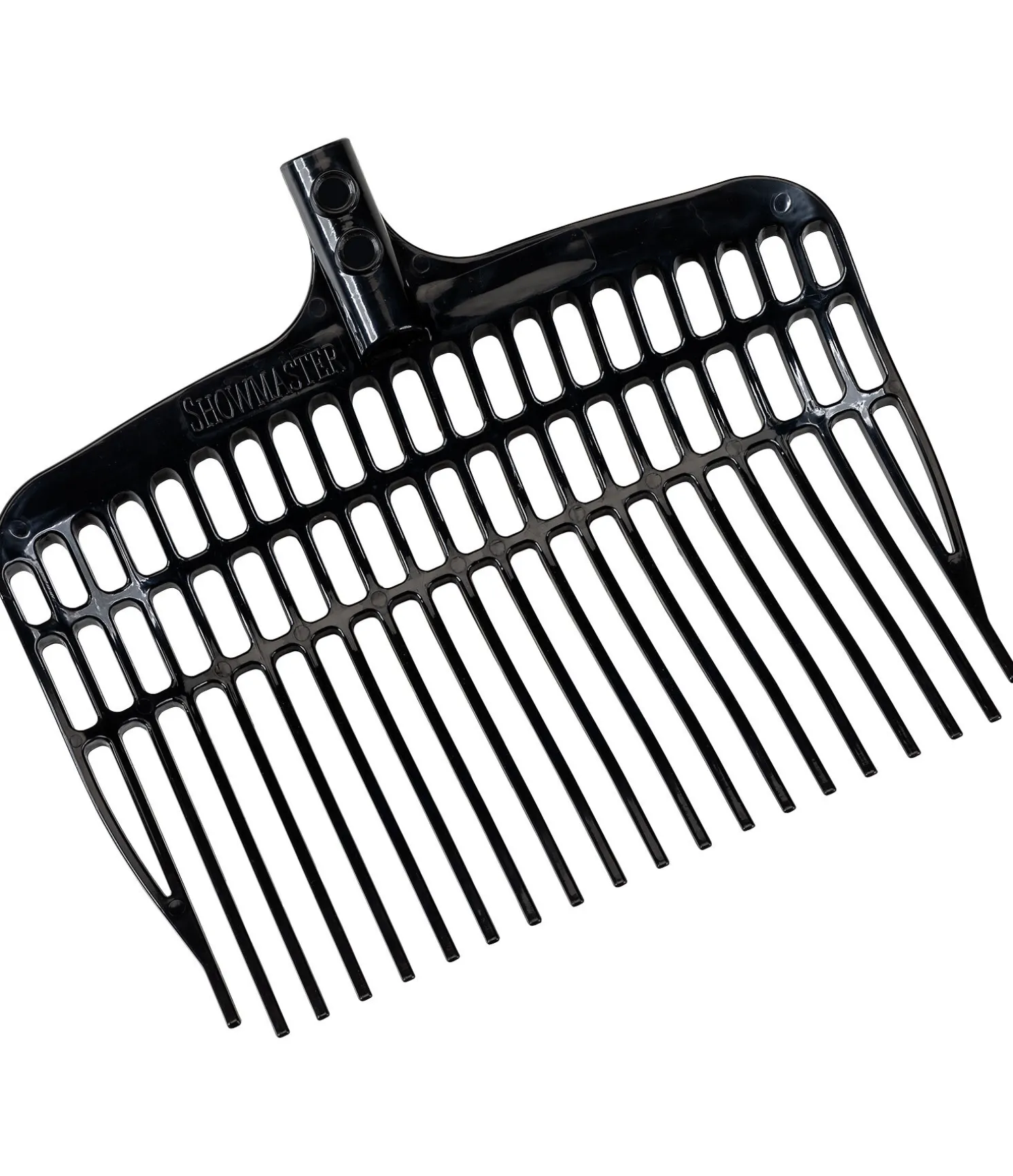 Fourche à crottins solide, légèrement incurvée, avec 20 dents et une jolie inscription SHOWMASTER.
