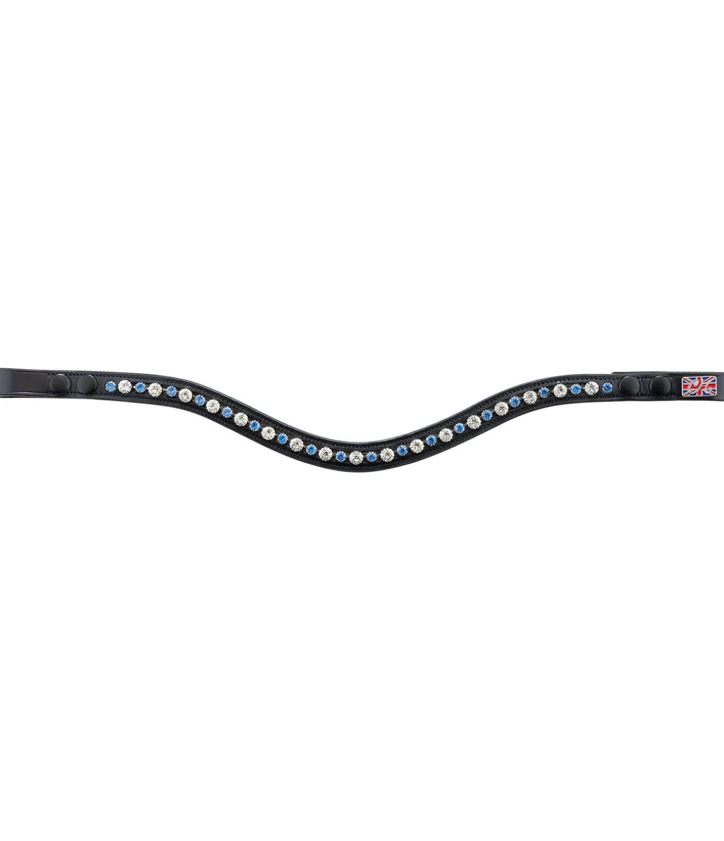 Frontal vague en cuir véritable avec petits et gros strass. Facile à fixer grâce aux boutons-pression.