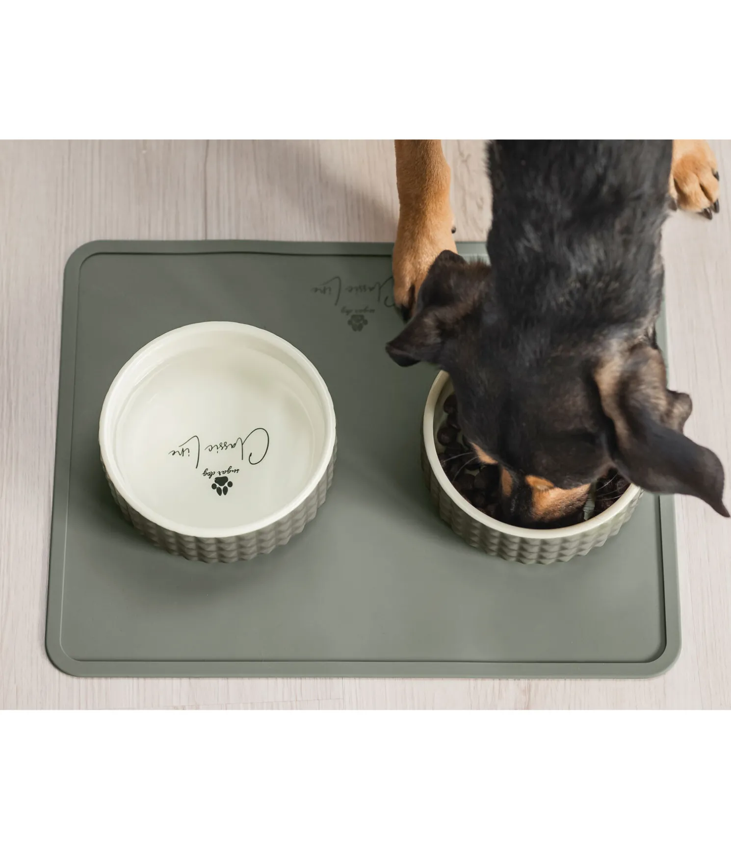 Gamelle en céramique de grande qualité avec flocage logo à l’intérieur et motifs géométriques en relief à l’extérieur. L’anneau en caoutchouc sous la gamelle assure un effet anti-dérapant. Assortie au plateau pour gamelles sugar dog Sailnas (231 087). La gamelle a une contenance de 800 ml. Diamètre : 18 cm.