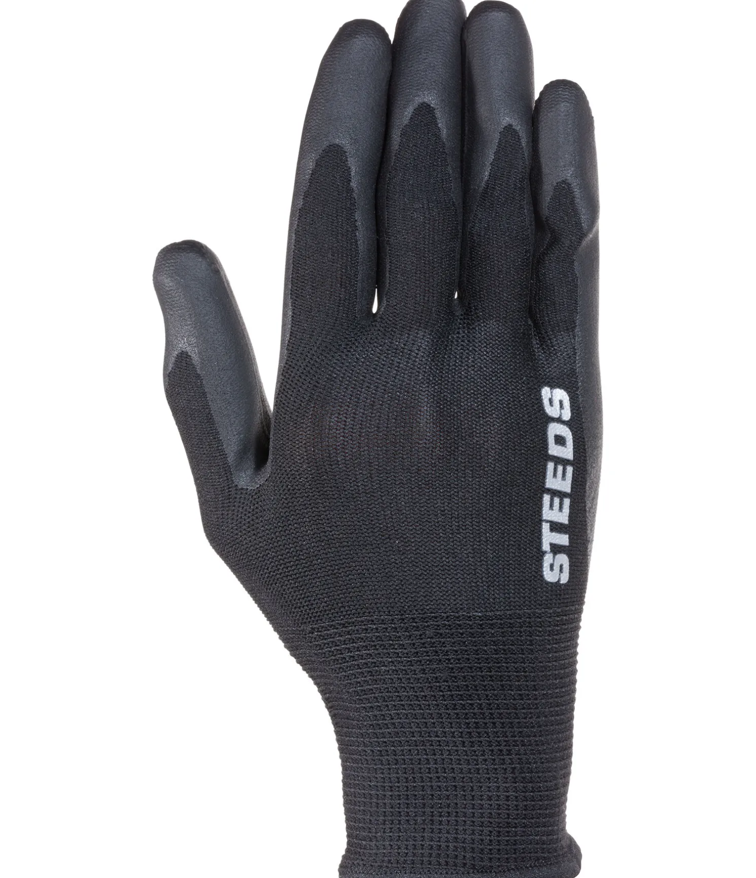 Gants robustes pour le travail quotidien à l’écurie. 100 % nylon avec revêtement en nitrile résistant à la déchirure.