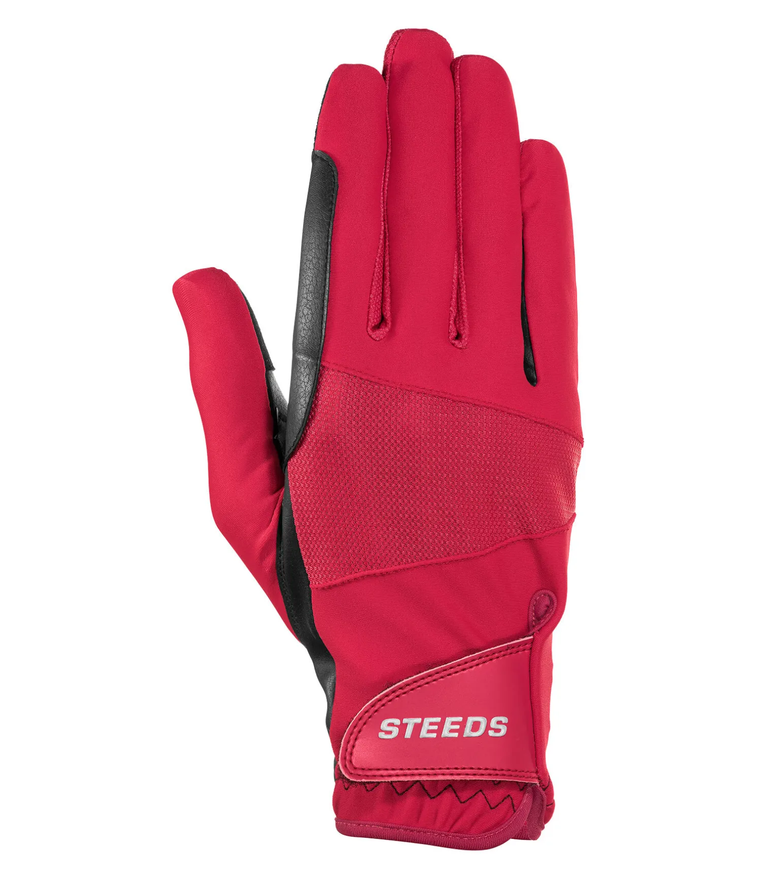 Gants d’équitation d’été légers au look sportif. Dos de la main extensible en tissus mesh respirant et en nylon fin. Paume antidérapante en matière PU pour une bonne prise en main des rênes. Poignets élastiqués avec logo STEEDS métallisé imprimé sur la fermeture auto-agrippante. Renforts aux passages de rênes. Dessus : 70 % nylon, 30 % élasthanne. Paume: 80 % polyuréthane, 20 % polyester.