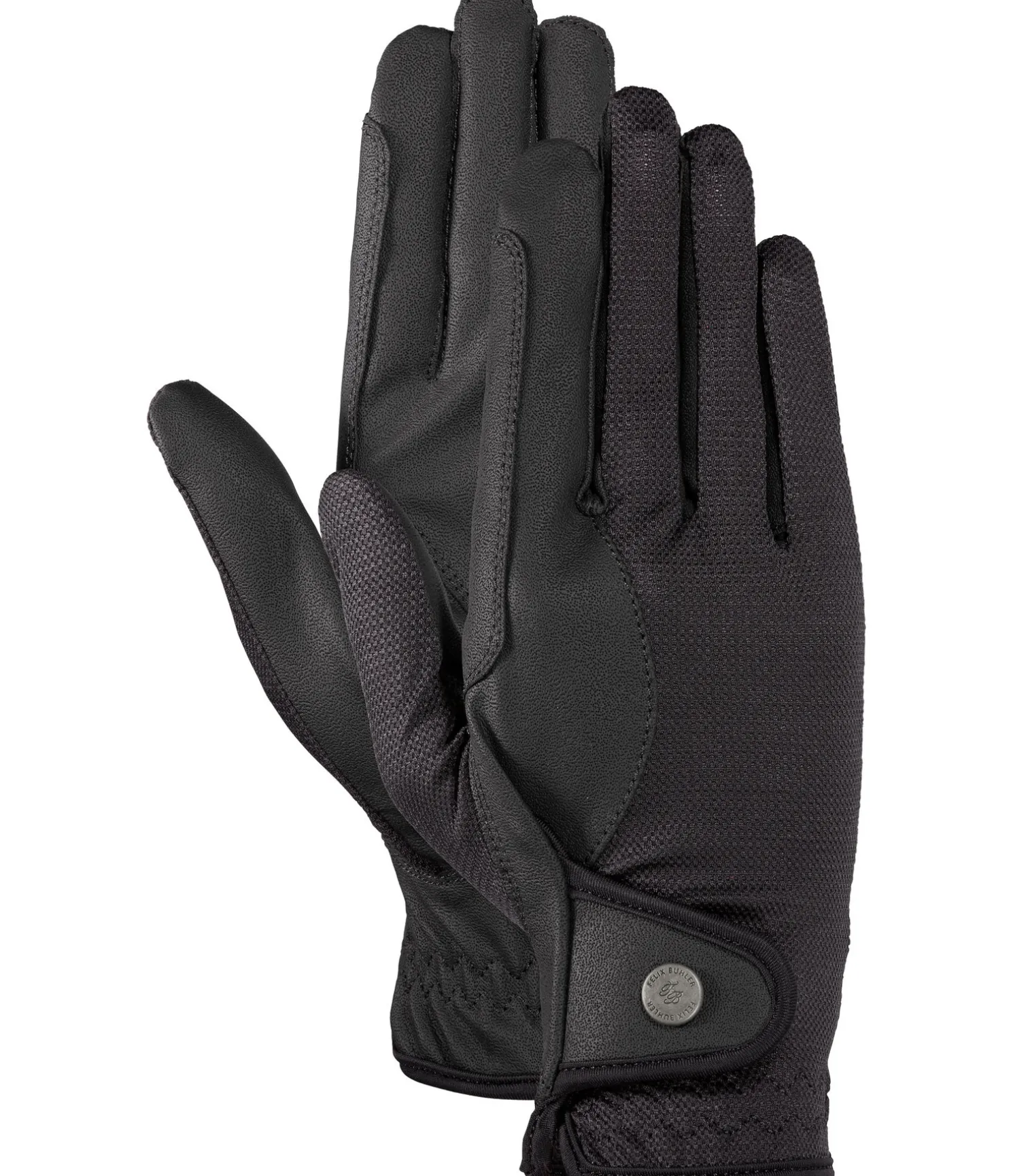 Gants d’équitation d’été modernes et sportifs, avec mesh extensible sur le dos de la main et PU (synthétique) respirant sur la paume et l’index. Poignets élastiqués avec patte auto-agrippante et renforts aux passages de rênes. Dessus : 100 % nylon. Paume : 60 % polyester, 40 % polyuréthane.