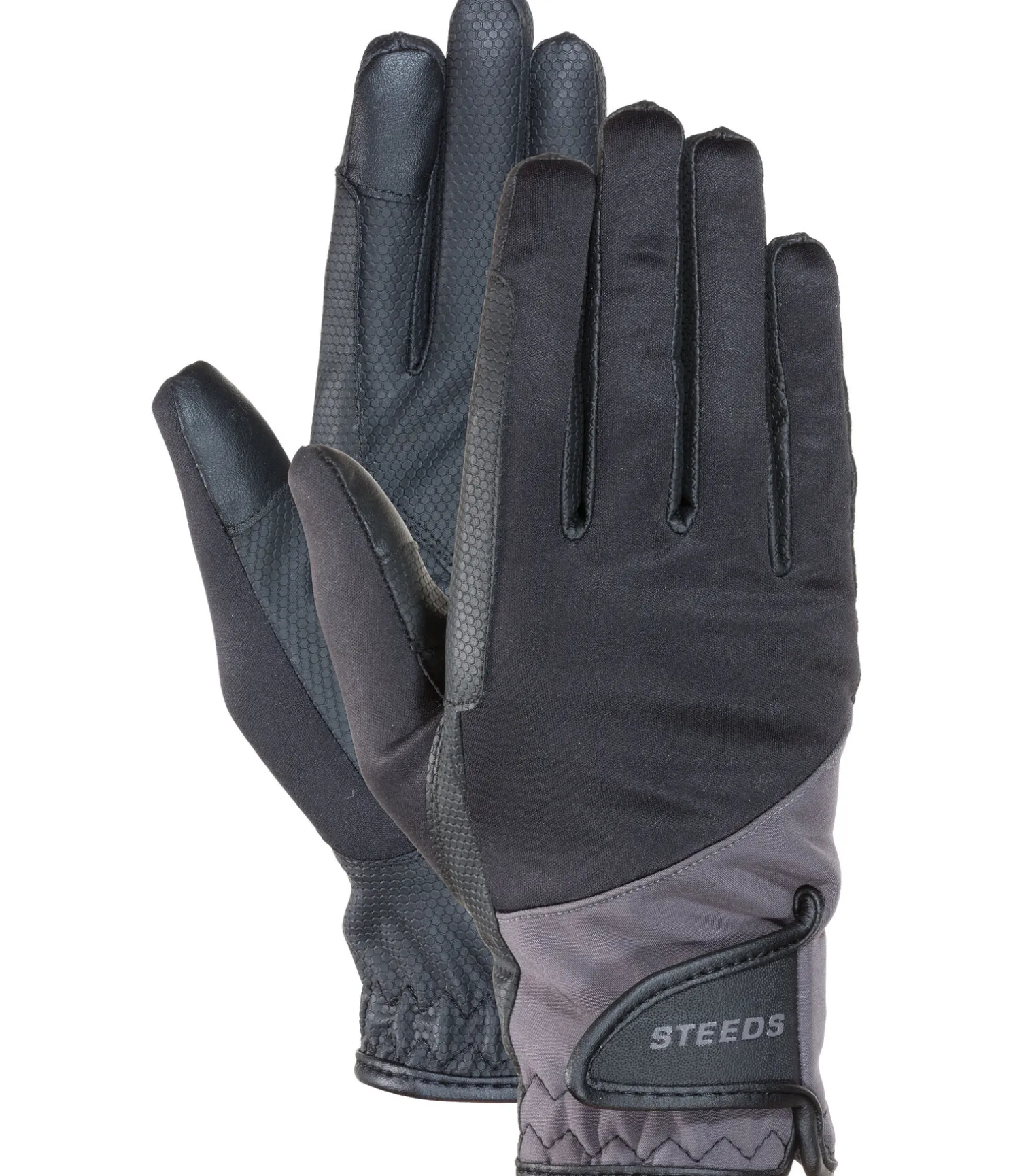 Gants d’hiver sportifs avec doublure Thinsulate. Déperlants, coupe-vent, respirants. Poignets réglables en largeur, renforts aux passages de rênes. Dessus 96 % polyester, 4 % élasthanne. Paume 51 % nylon, 49 % polyuréthane. Doublure 63 % polypropylène, 37 % polyester.
