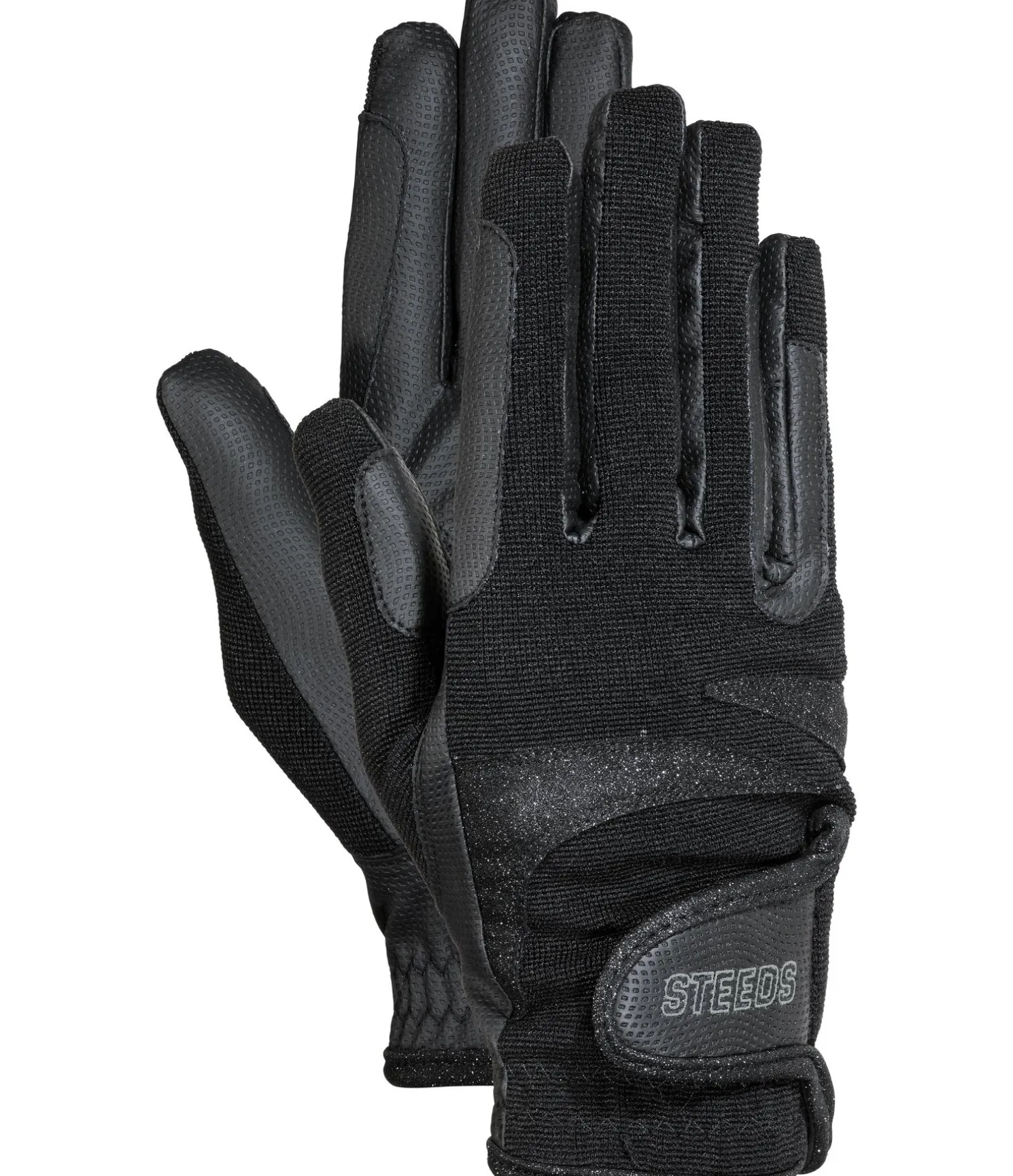 Gants d’équitation d’hiver avec reflets scintillants. Doublure chaude et douce. Poignets élastiqués avec fermeture par patte auto-agrippante. Renforts aux passages de rênes. Partie supérieure 98 % nylon, 2 % élasthanne. Insert 100 % polyester. Paume 100 % polyuréthane. Doublure 100 % polyester.