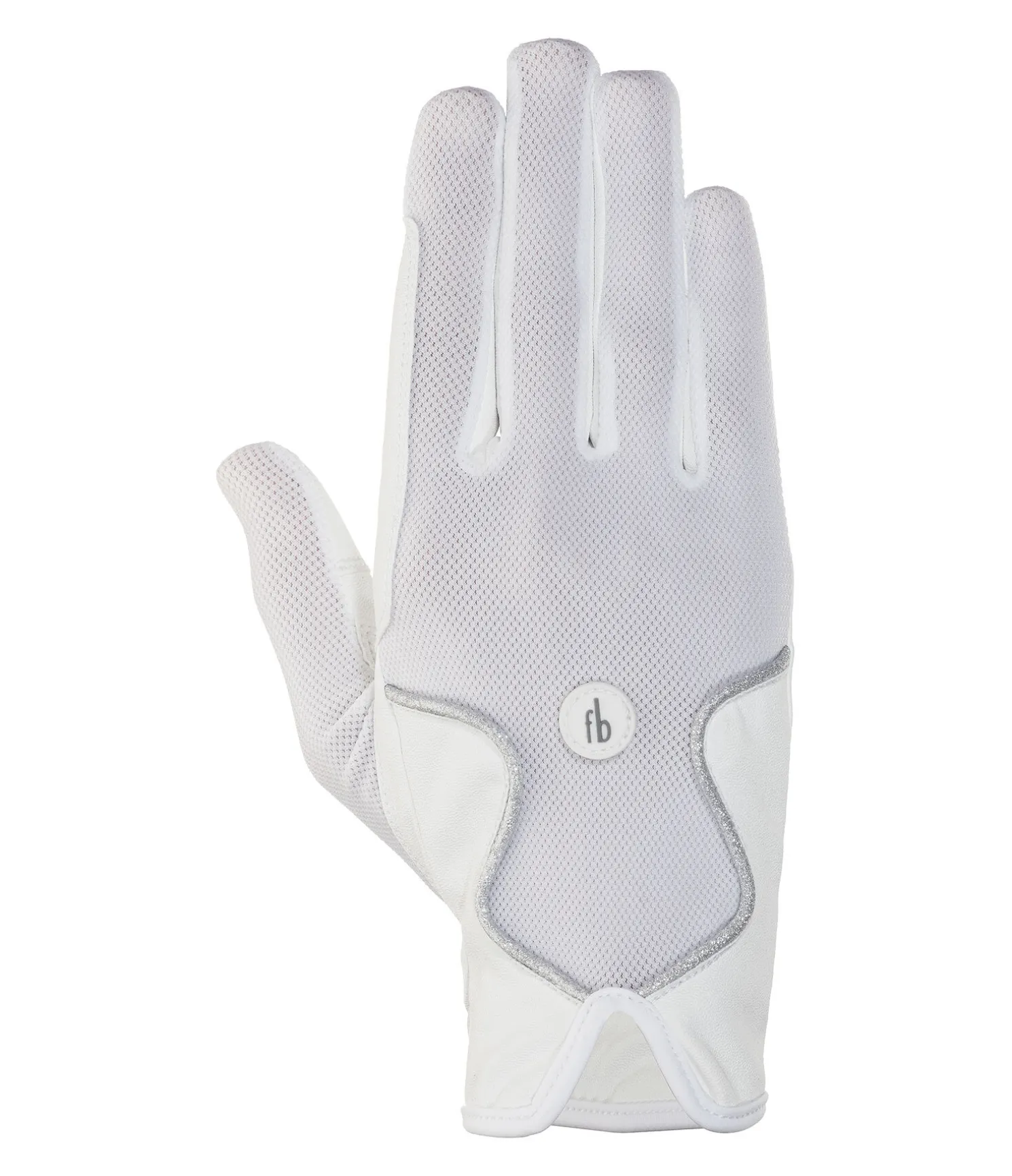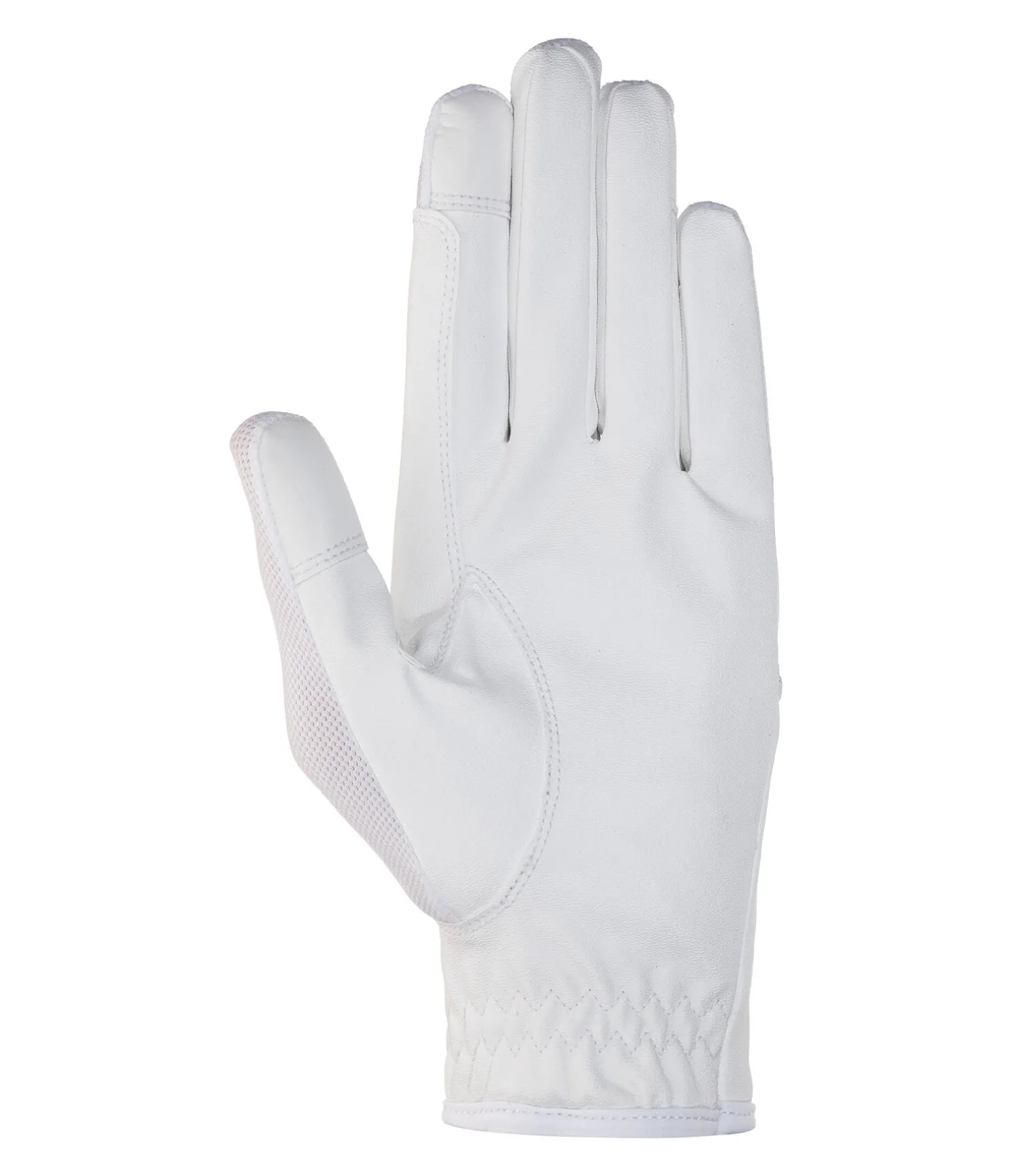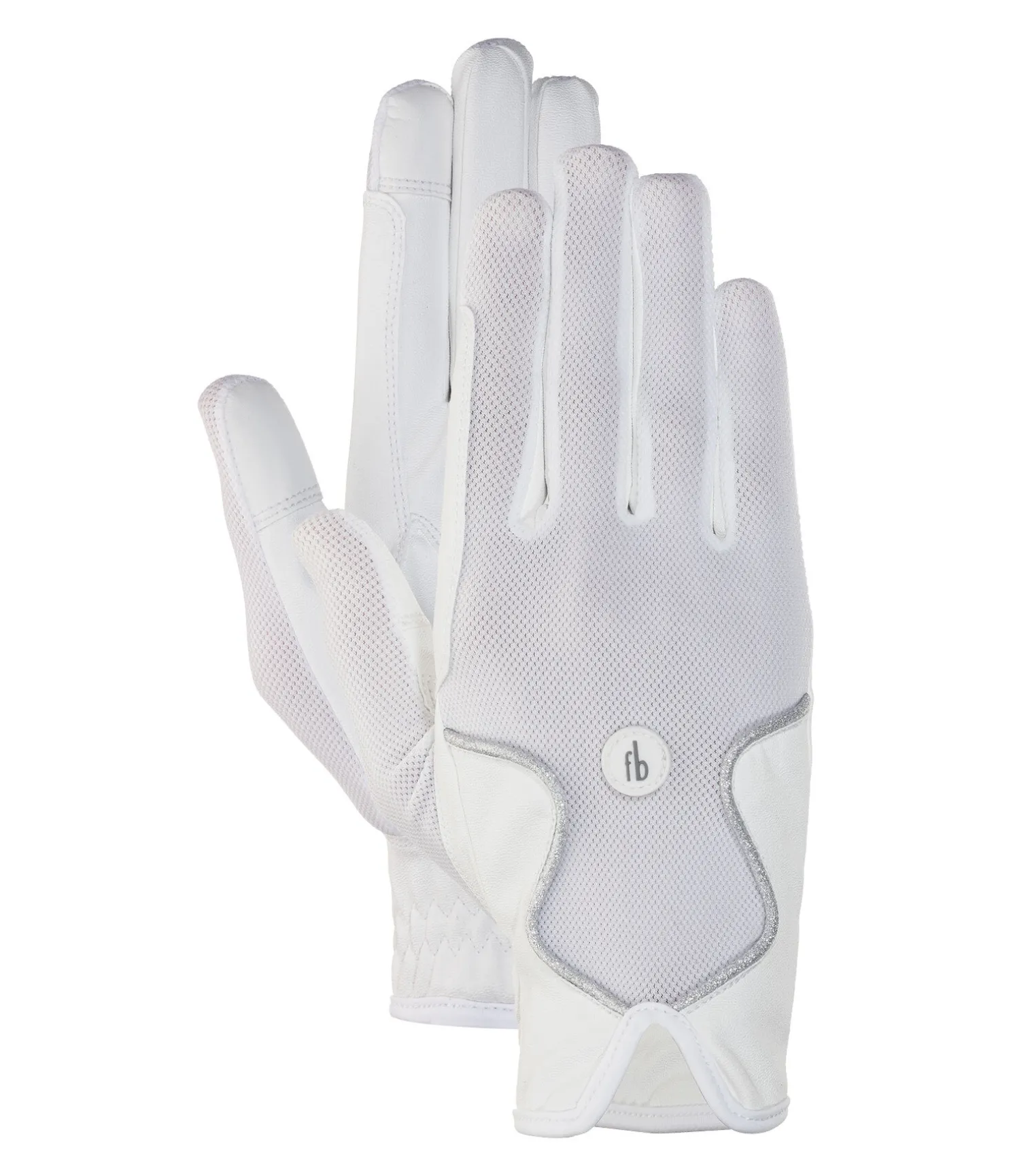 Gants d’équitation d’été élégants et respirants avec dos de la main en matière mesh sublimé de lignes scintillantes. Enfilage facile car sans fermeture. Renfort à l’index. Compatibles avec les écrans tactiles. Dos et paume de main 40 % polyuréthane, 60 % polyester, mesh 100 % nylon.