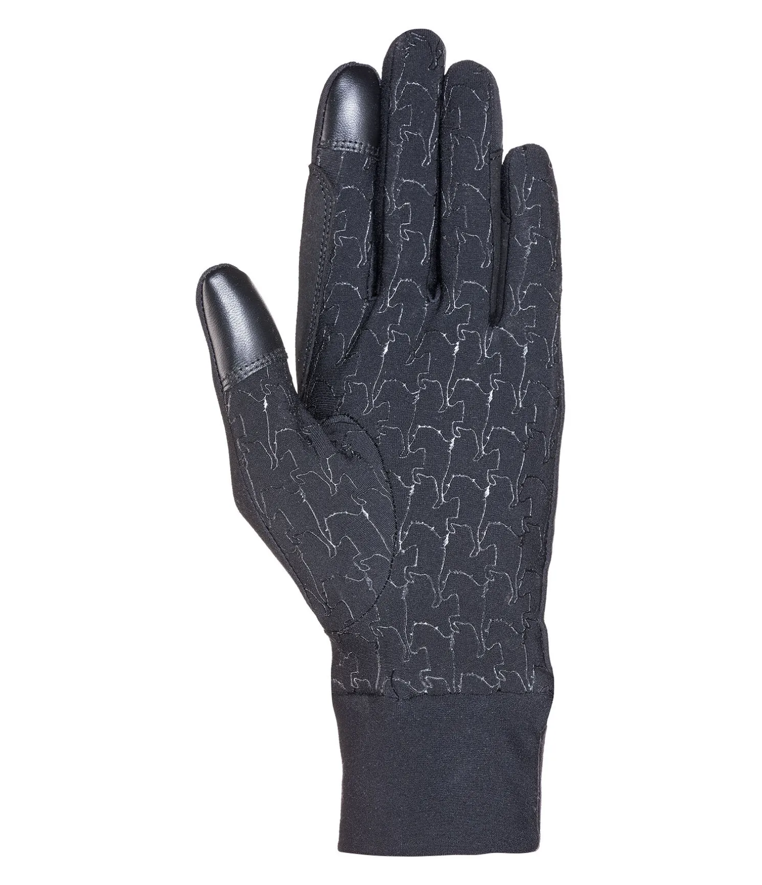 Gants d’équitation hiver extensibles. Matière douce et respirante. Intérieur de la main avec grip en silicone et motif cheval islandais. Compatibles avec les écrans tactiles. Matière extérieure 100 % nylon, paume 87 % polyester, 13 % élasthanne.