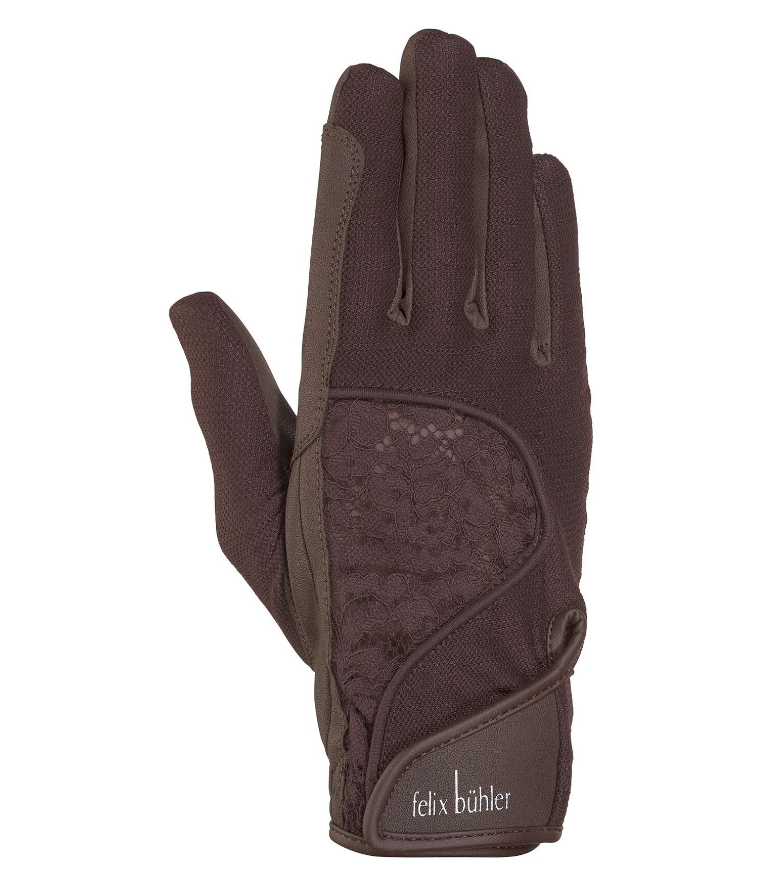 Gants d’équitation fins avec élégant élément en dentelle sur le dos de la main. Paume antidérapante avec renfort aux passages de rênes. Mesh respirant sur le dos de la main. Poignets élastiqués avec patte auto-agrippante. Dessus 100 % nylon, paume 60 % polyester, 40 % polyuréthane.