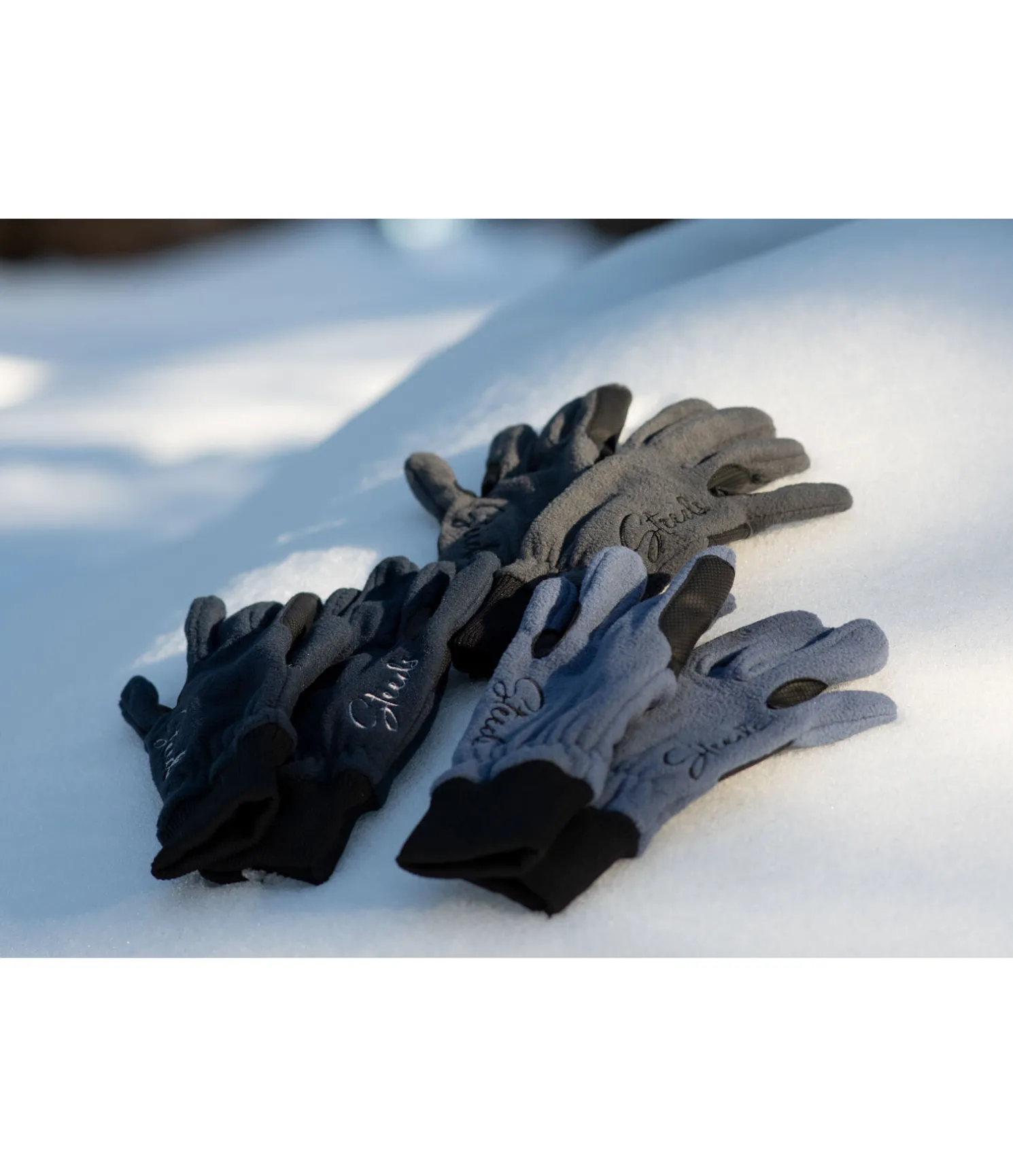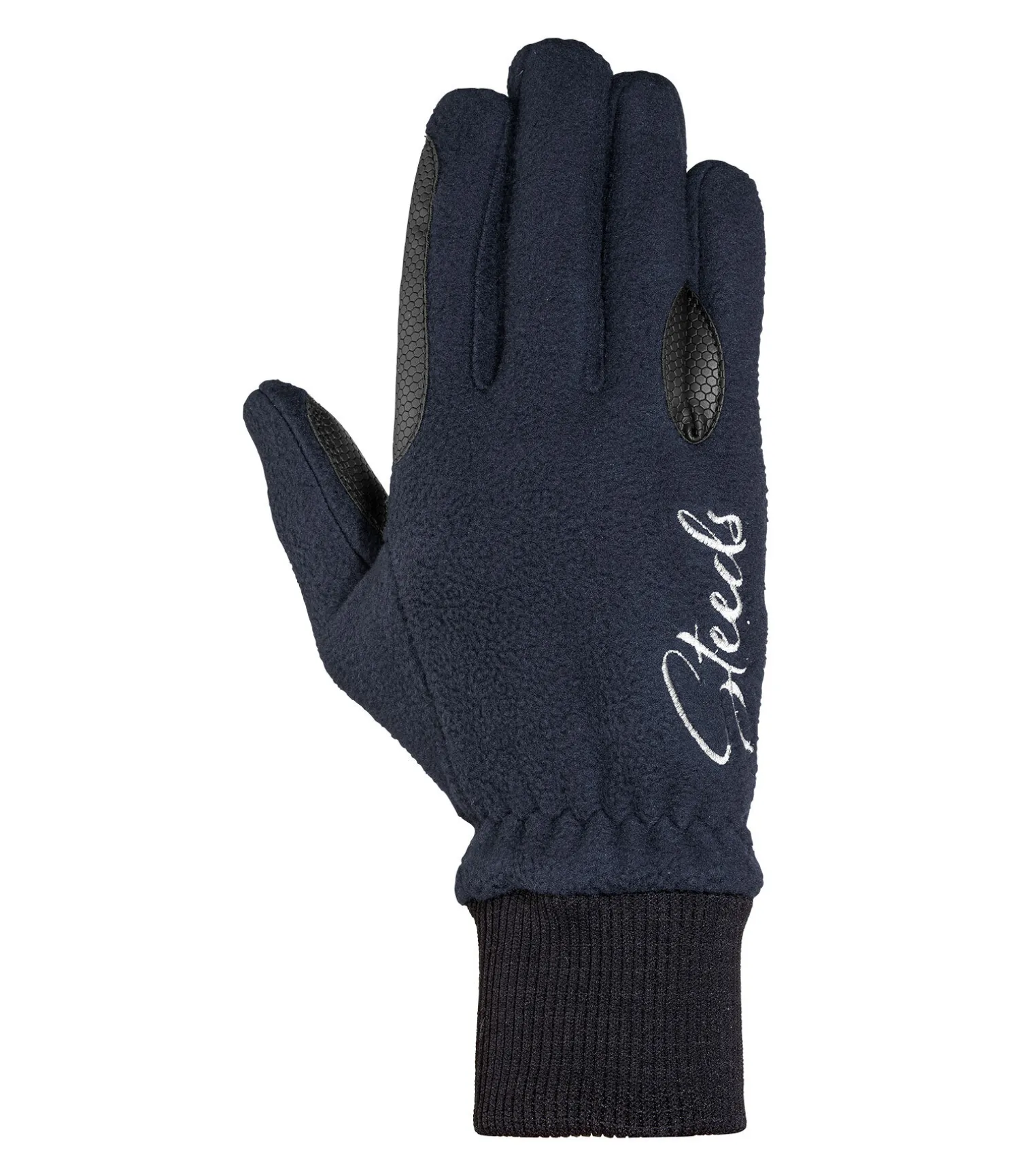 Gants d’équitation en polaire douce avec renforts antidérapants aux passages de rênes. Poignets élastiques. 100 % polyester.