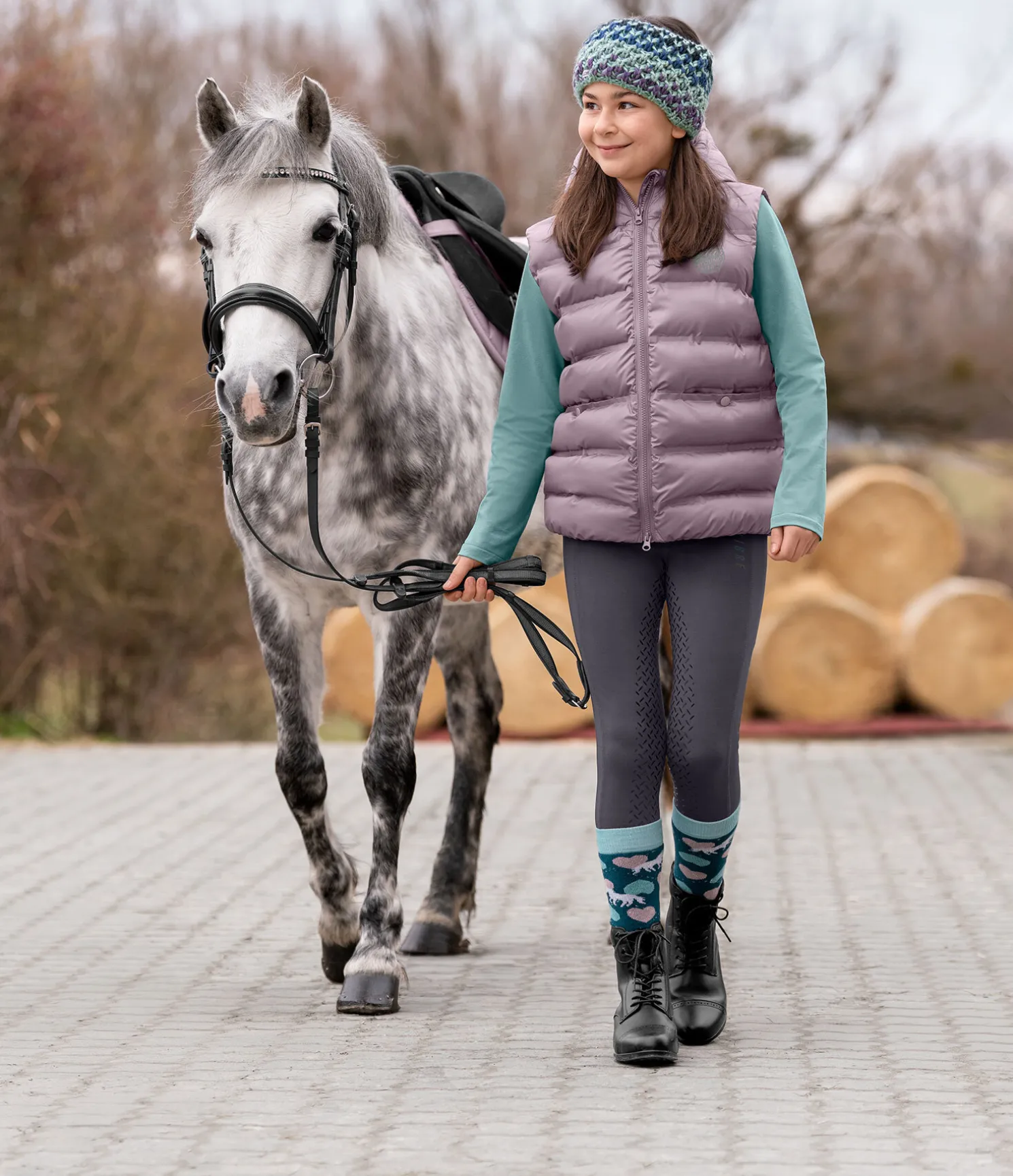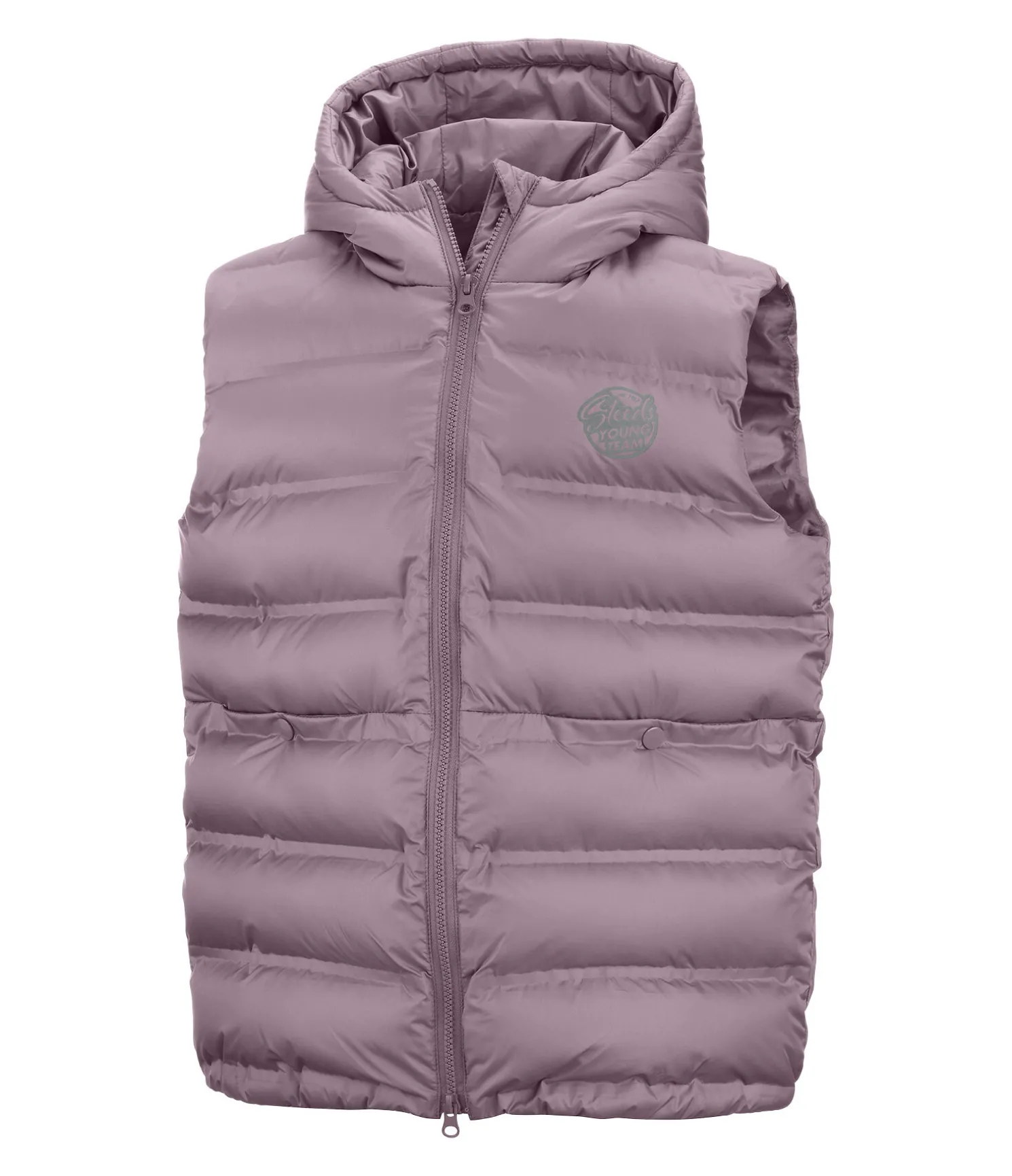 Gilet d’équitation matelassé sportswear avec col montant et capuche. Fermeture à glissière de couleur contrastante avec protège-menton. 2 poches avant avec boutons-pression. Ourlet élastiqué. Imprimé STEEDS réfléchissant sur la poitrine. Surpiqûres thermosoudées. 100 % polyester.