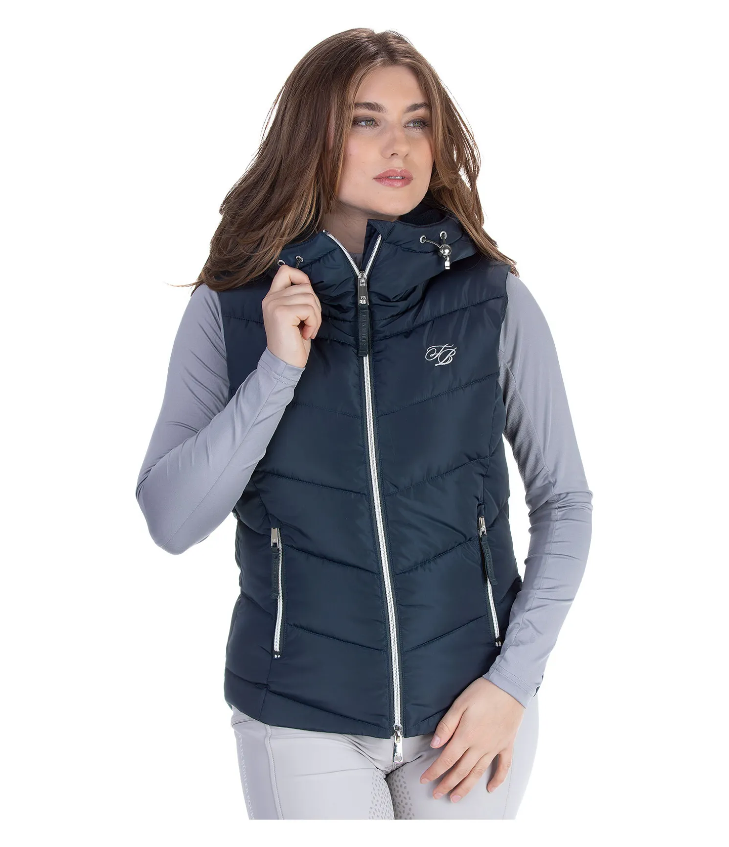 Gilet d’équitation avec doublure chaude. Capuche haute réglable doublée en polaire. Bouton-pression pour fixer la capuche dans le dos. Coupe cintrée légèrement plus longue à l’arrière. 2 poches avant zippées. Fermeture à glissière double sens avec sous-patte et protège-menton. 2 fentes cavalières avec boutons-pression à l’arrière. Garnissage doux imitation duvet. Broderie sur la poitrine et sur la capuche. 100 % polyester.
