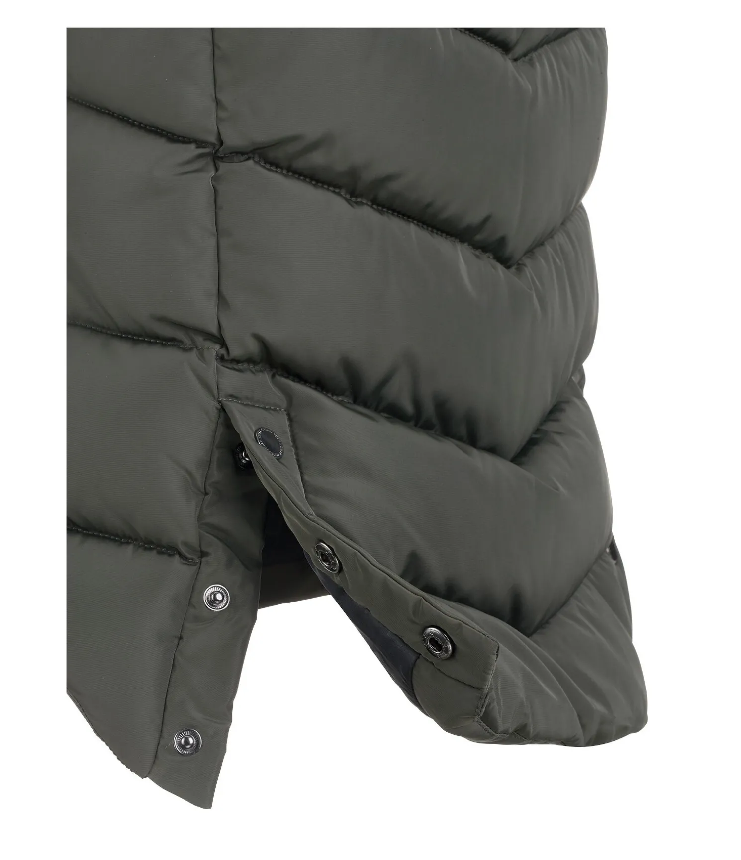 Gilet d’équitation avec doublure chaude. Capuche haute réglable doublée en polaire. Bouton-pression pour fixer la capuche dans le dos. Coupe cintrée légèrement plus longue à l’arrière. 2 poches avant zippées. Fermeture à glissière double sens avec sous-patte et protège-menton. 2 fentes cavalières avec boutons-pression à l’arrière. Garnissage doux imitation duvet. Broderie sur la poitrine et sur la capuche. 100 % polyester.