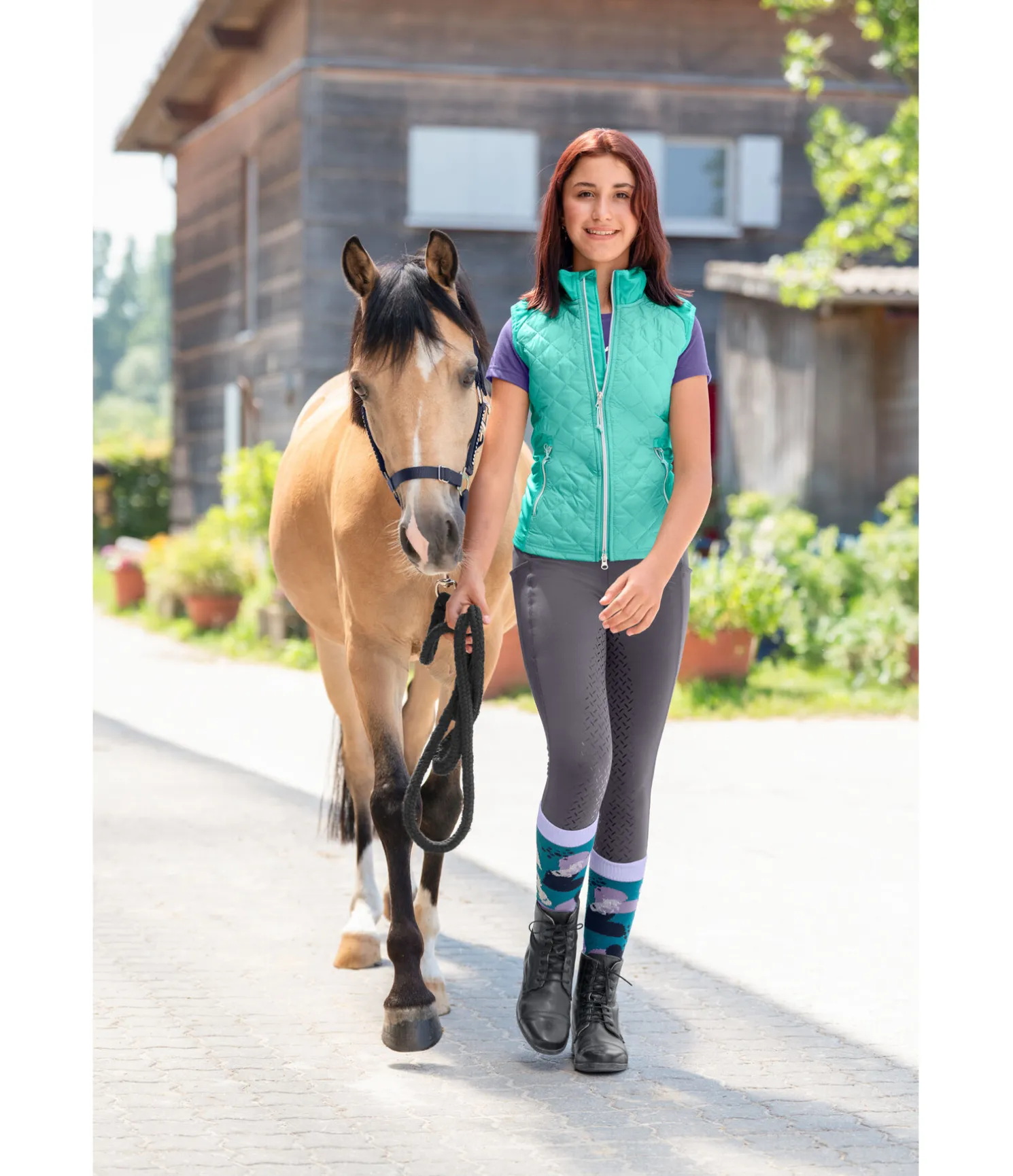 Gilet d’équitation bi-matière en tissu stretch performance et matelassage à losanges à l’avant. Matière respirante à séchage rapide. Avec col montant, fermeture à glissière double sens avec sous-patte, 2 poches zippées à l’avant et discret logo brodé à l’arrière. Emmanchures élastiquées. Matelassage 100 % polyester. Tissu stretch Performance 90 % polyester et 10 % élasthanne.