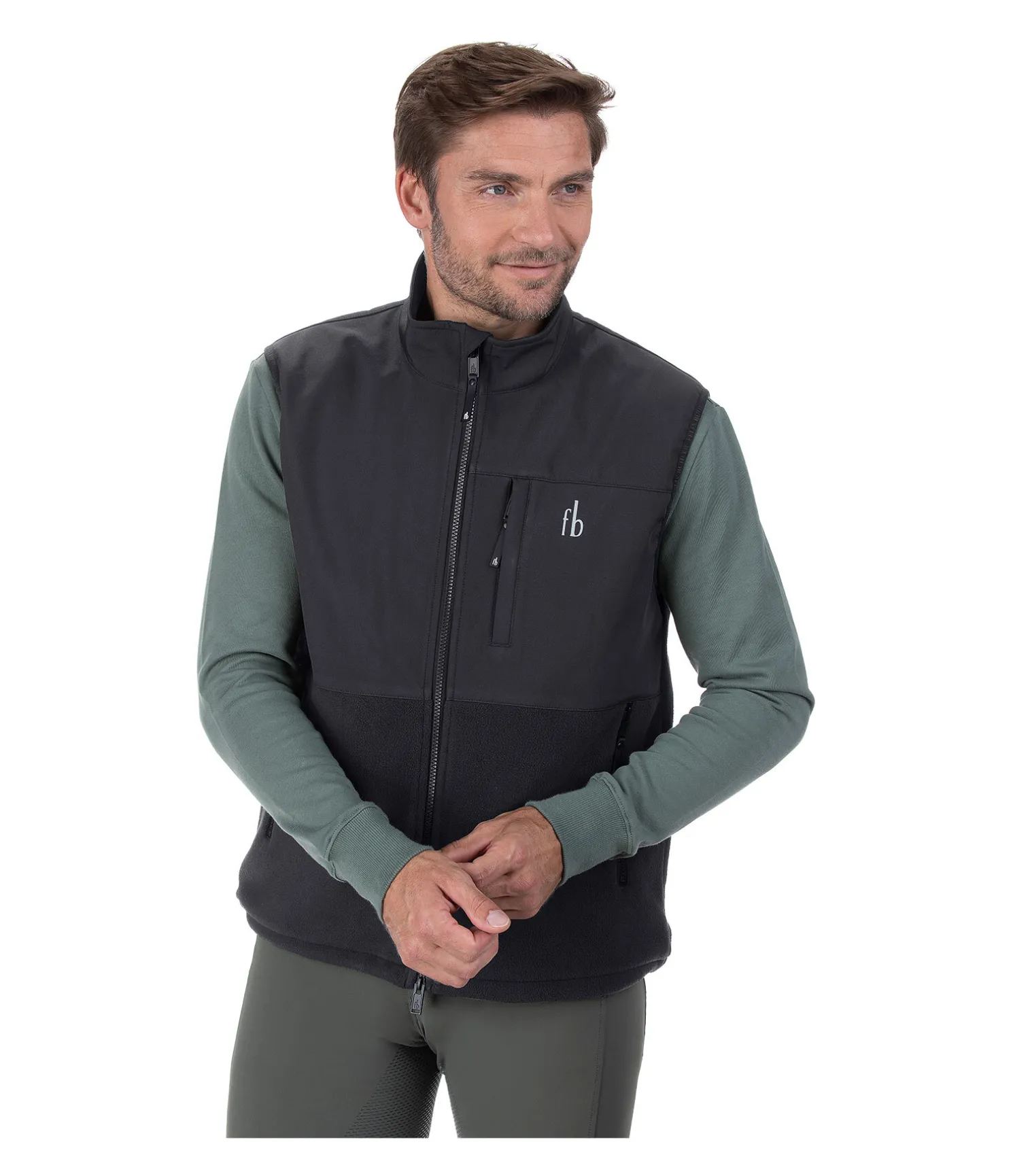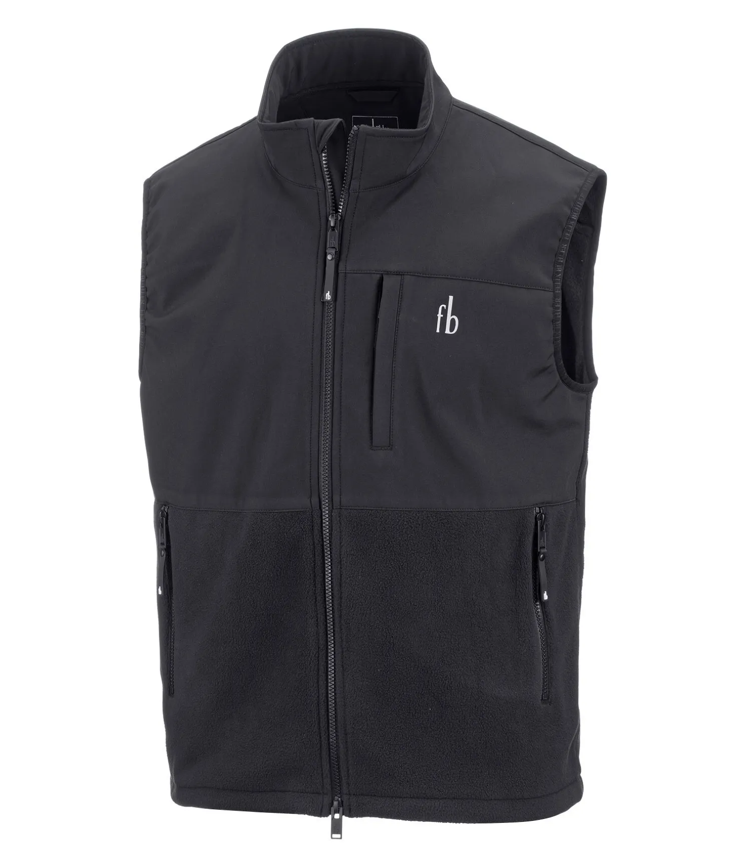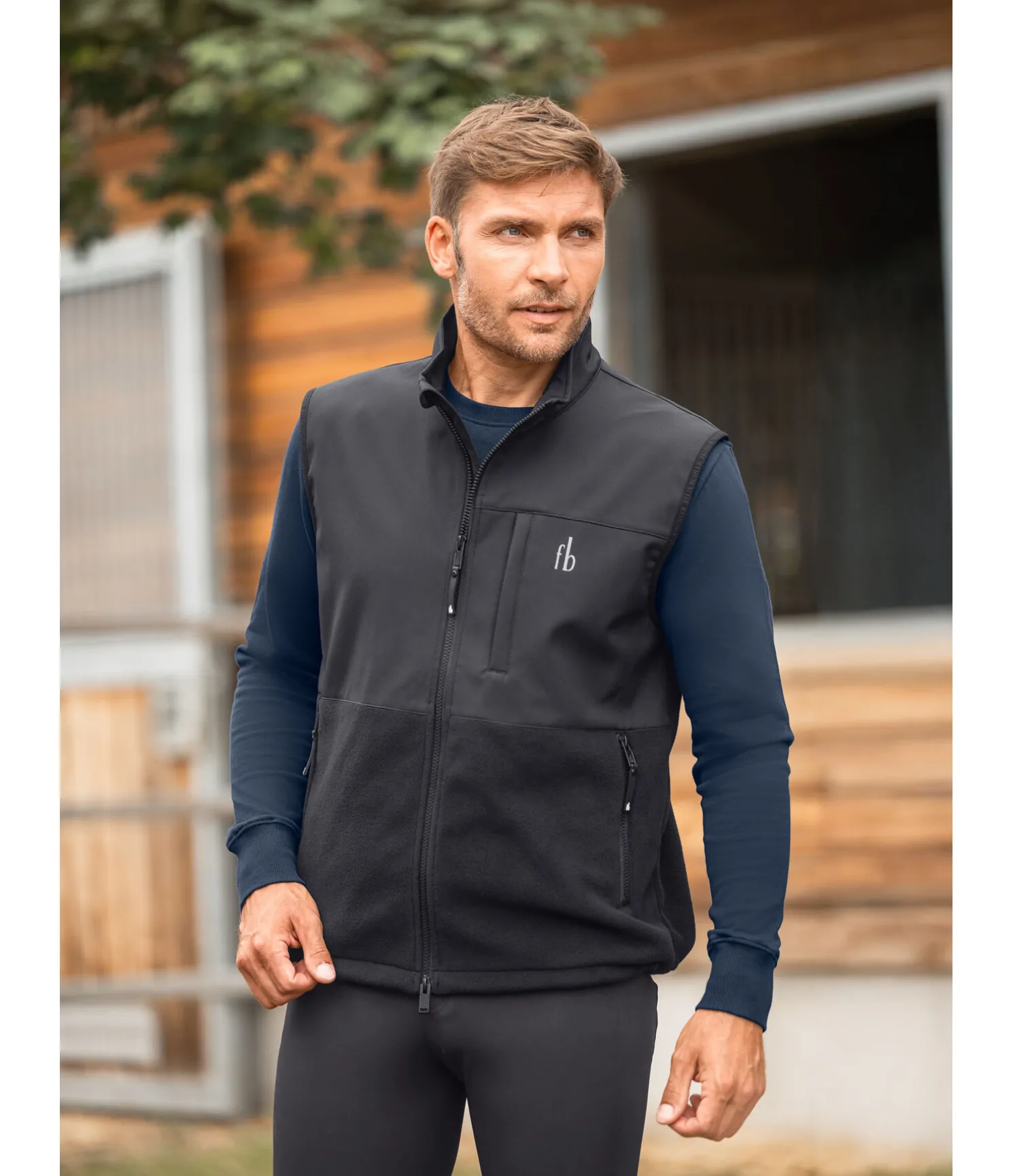 Gilet décontracté extra confortable. Technique et déperlant. Avec col montant et empiècements softshell. Fermeture à glissière double sens avec sous-patte. 2 poches latérales zippées et 1 poche poitrine zippée. Cordon de réglage à la taille. Softshell 94 % polyester, 6 % élasthanne ; polaire 100 % polyester.