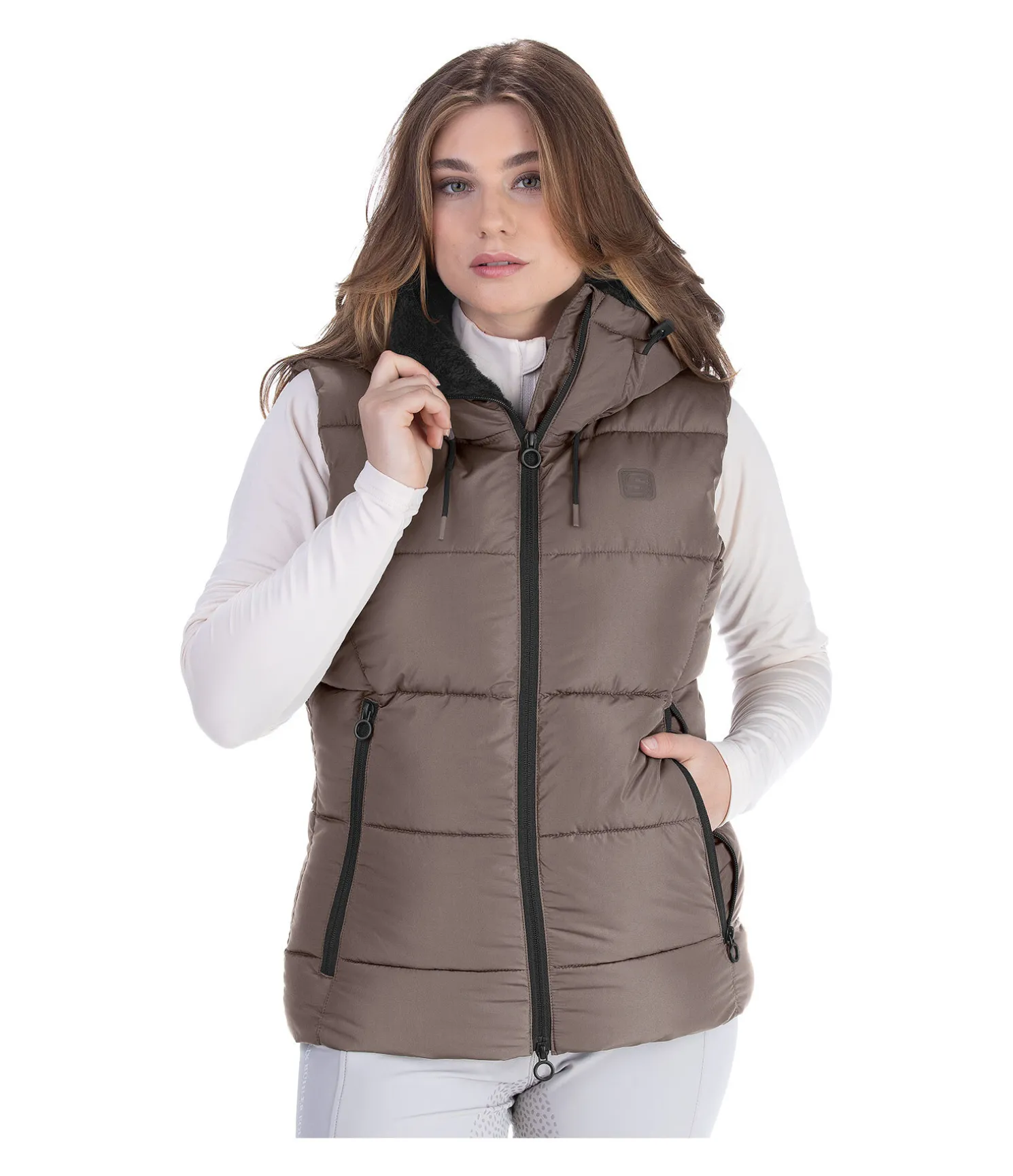 Gilet matelassé chaud avec doublure intégrale en polaire Teddy. Garnissage particulièrement doux imitation duvet. Capuche réglable extra haute dotée d’un bouton-pression pour être fixée dans le dos. Fermeture à glissière double sens avec sous-patte et protège-menton. 2 poches latérales zippées et 1 poche intérieure. Taille élastiquée. Badge STEEDS sur la poitrine. 100 % polyester.