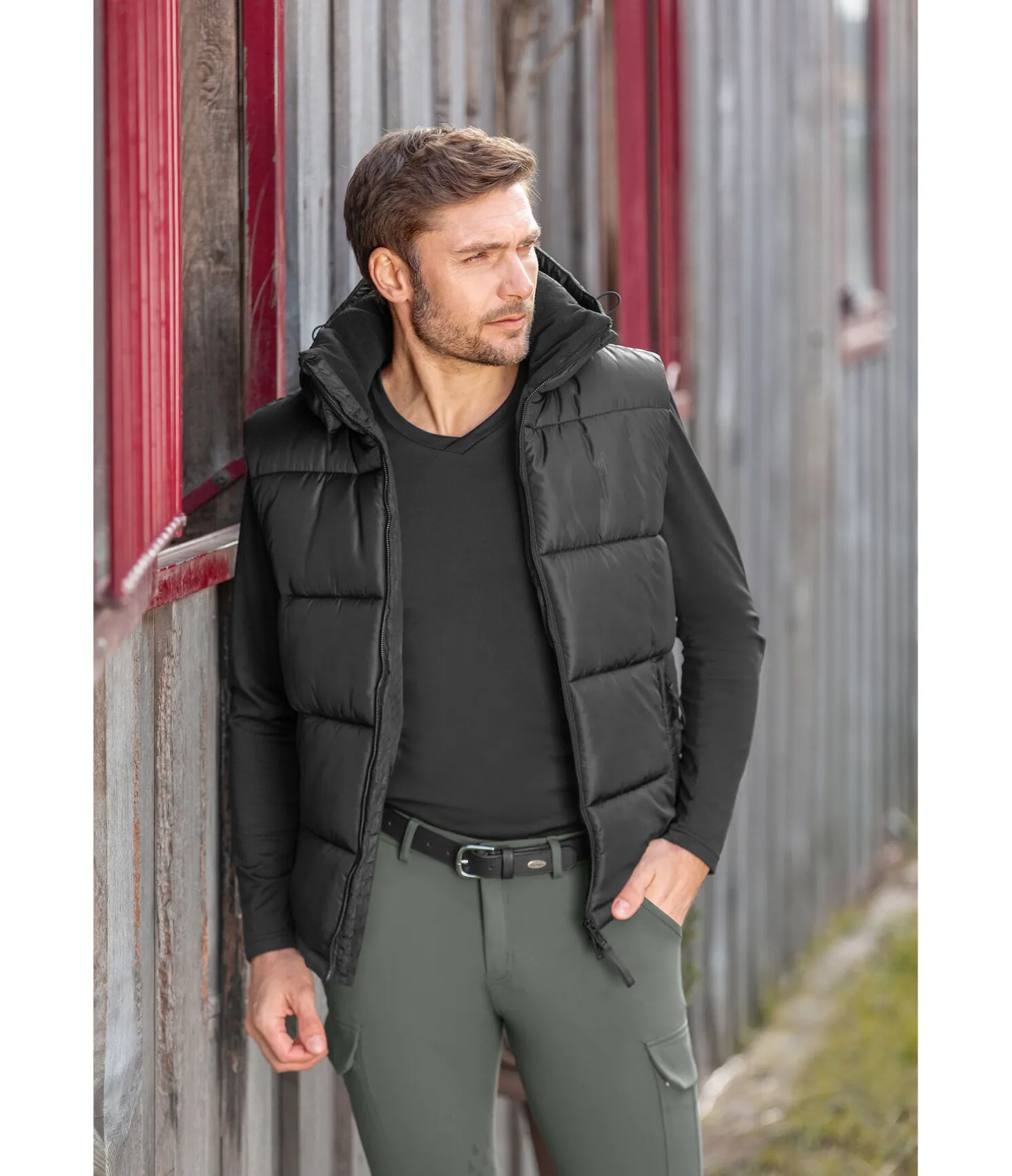 Gilet d’équitation matelassé sportswear avec capuche amovible. Rembourrage chaud. Col doublé en polaire douce. Doublure intérieure avec imprimé all-over Felix Bühler. Fermeture à glissière double sens avec sous-patte et protège-menton. 2 poches latérales zippées dissimulées. Logo discret et nuancé sur la poitrine. 100 % polyester.