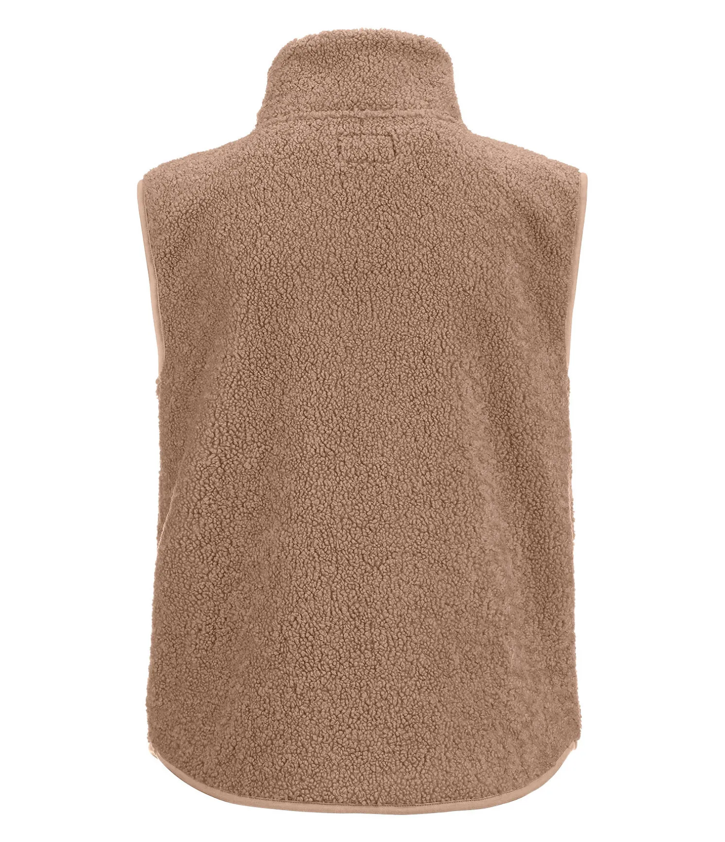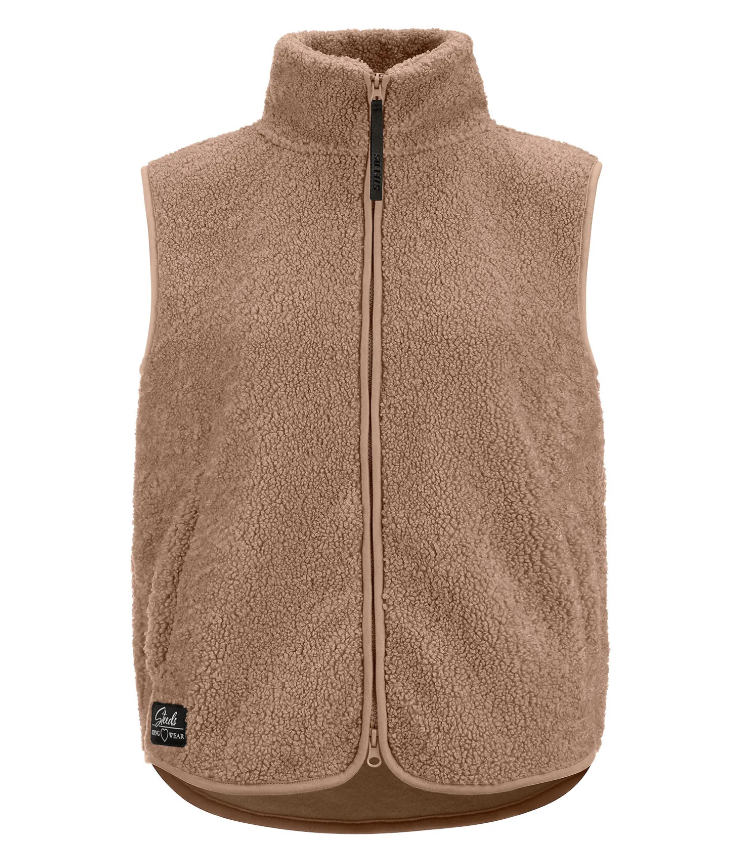 Gilet en polaire Teddy douce et extensible. Col montant. Coupe plus longue à l’arrière. Fermeture à glissière double sens avec sous-patte. Deux poches zippées latérales dissimulées. Étiquette STEEDS à la taille. 100 % polyester.