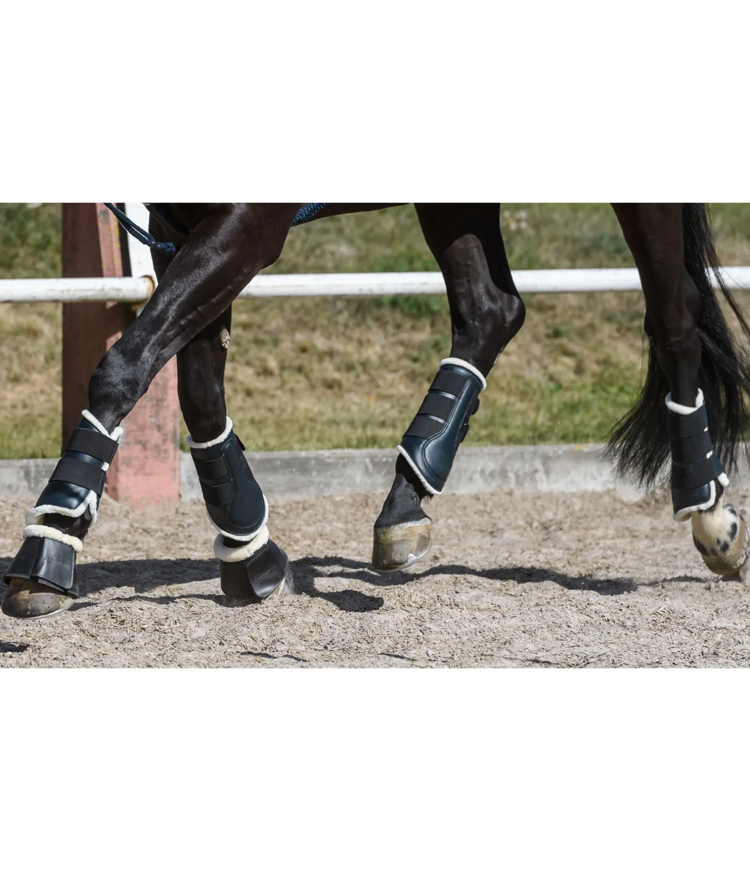 Guêtres de dressage en matière synthétique résistante. Doublure en polaire Teddy douce. Avec deux bandes auto-agrippantes élastiquées pour un ajustement parfait et un maintien sûr. Vendues par paire.