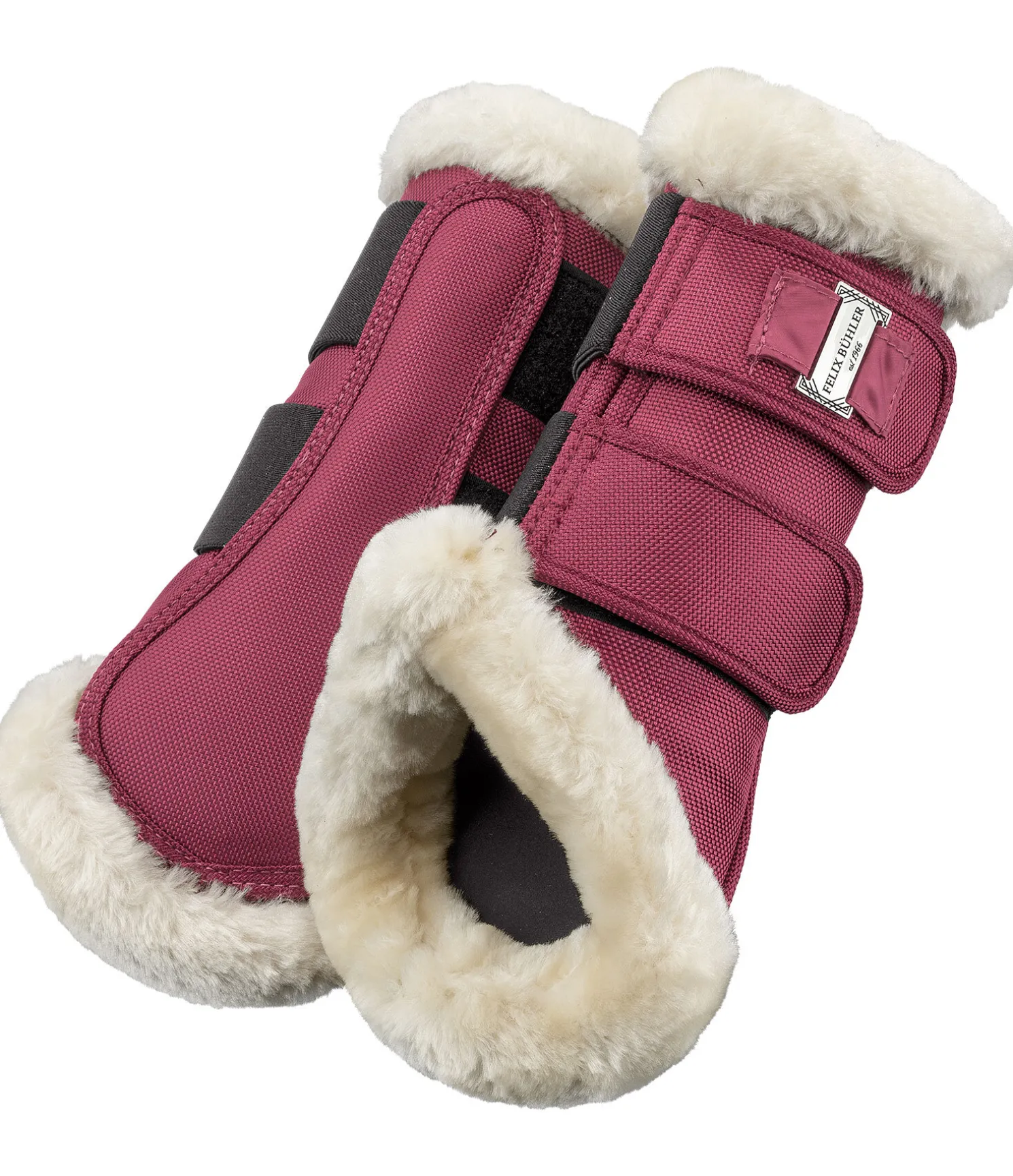 Élégantes guêtres de dressage avec bordure en polaire Teddy douce. Doublure moelleuse en caoutchouc chloroprène pour une protection optimale contre les impacts. Revêtement anti-salissures en matière résistante 600 deniers. Forme anatomique, pattes auto-agrippantes avec empiècements élastiques pour un ajustement parfait. Plaque métallique avec logo Felix Bühler. Doublure 100 % caoutchouc chloroprène, revêtement 100 % polyester. Vendues par paire.