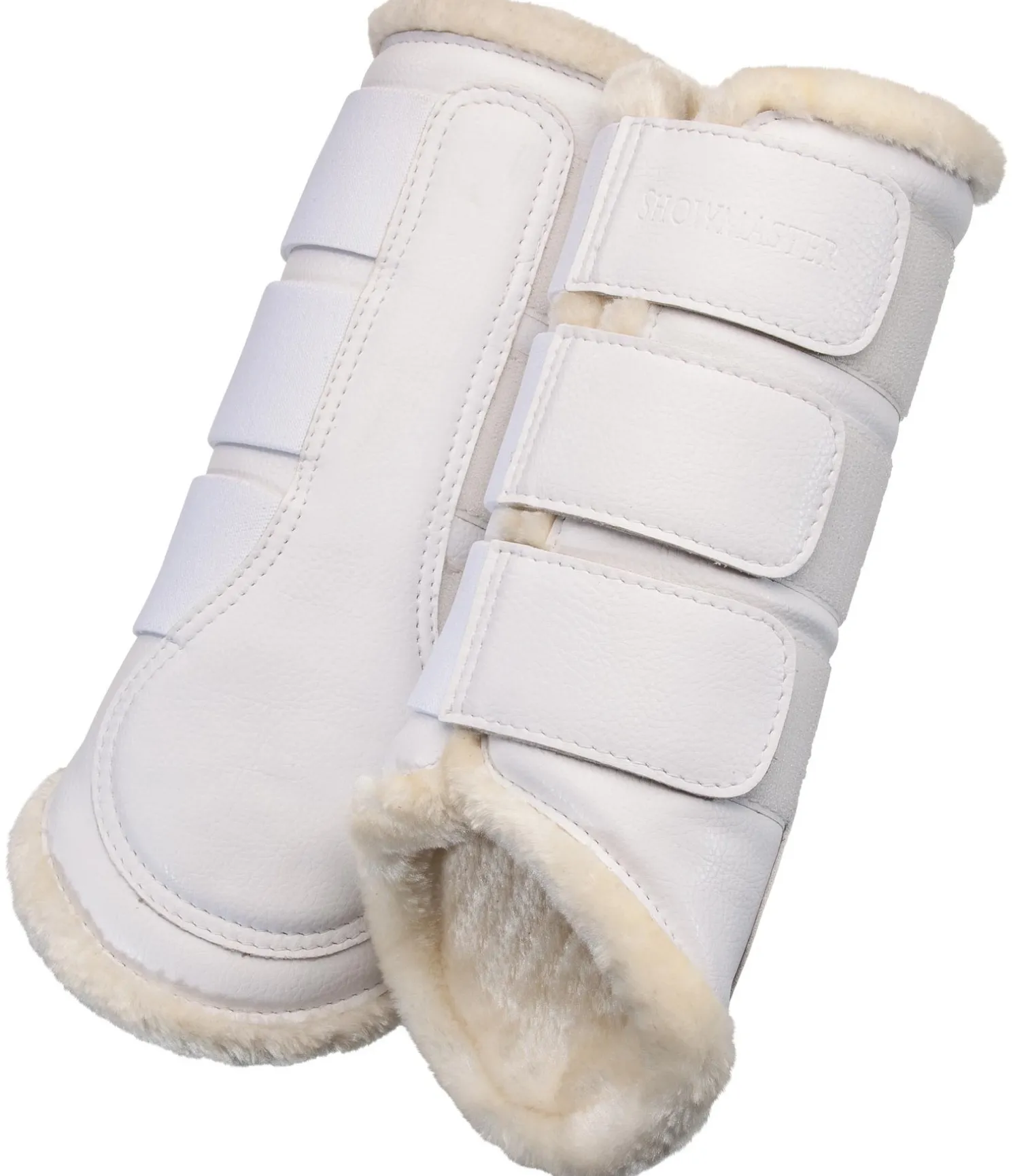 Guêtres de dressage en matière synthétique résistante. Doublure en polaire Teddy douce. Avec trois bandes auto-agrippantes élastiquées pour un ajustement parfait et un maintien sûr. Vendues par paire.