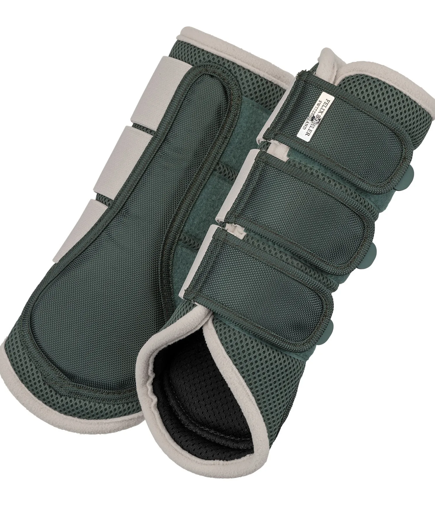 Guêtres souples pour postérieurs. Mesh extrêmement respirant permettant une circulation optimale de l’air. Pattes auto-agrippante élastiquées pour un ajustement parfait. Petit plaque métallique avec logo. Renfort sur la face intérieure pour une protection supplémentaire contre les chocs. Bordure en polaire pour éviter les frottements. 100 % polyester. Vendues par paires.