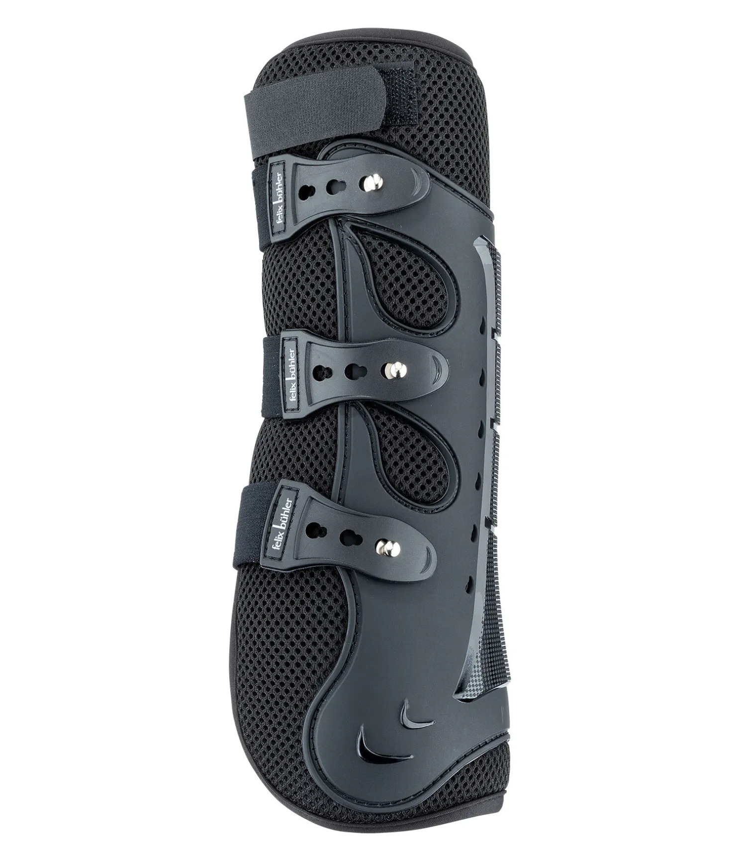 Guêtres anatomiques équipées d’une coque rigide absorbant les chocs, ce qui offre une très grande protection aux tendons fléchisseurs et extenseurs. Particulièrement utiles en dressage. La doublure intérieure en tissu Air mesh permet une circulation de l’air optimale. Système de fermeture rapide pour un ajustement parfait. Vendues par paire.