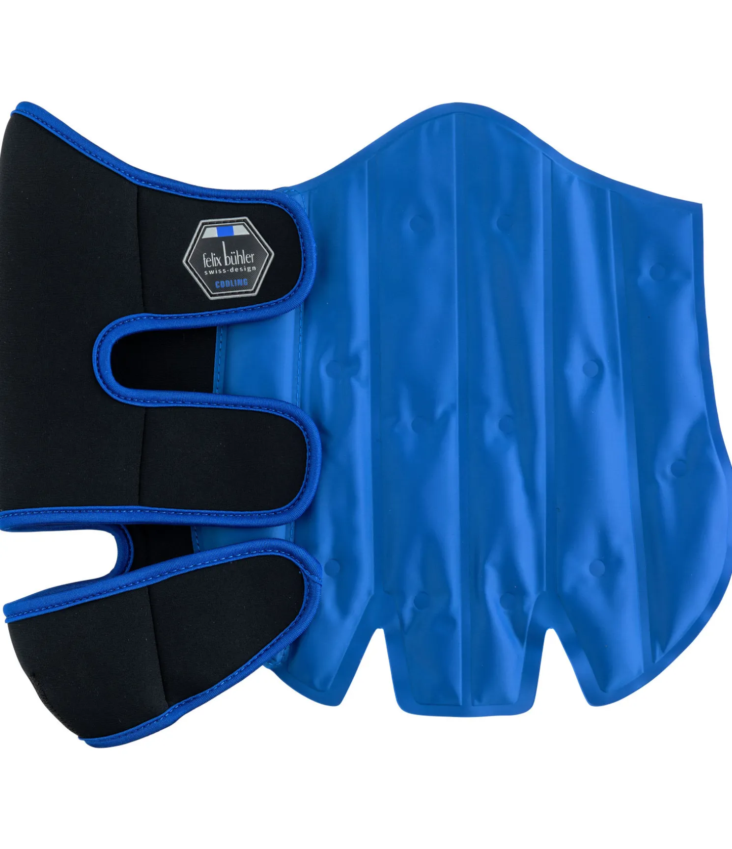 Les guêtres rafraîchissantes Felix Bühler Cool Down sont idéales pour soigner les tendons et articulations par le froid. Utilisées régulièrement avant ou après un entraînement intensif ou comme soutien après une blessure, ces guêtres ont un effet positif sur la régénération. Peut accélérer le processus de convalescence. Le gel contenu dans les guêtres rafraîchissantes reste mou même lorsqu’il est froid et est réparti partout dans le coussin afin d’assurer une grande surface de contact. La guêtre en caoutchouc-chloroprène garantit un bon maintien sur la jambe du cheval. Placer les guêtres rafraîchissantes au réfrigérateur 30 minutes avant utilisation. L’effet rafraîchissant dure jusqu’à 30 minutes. Attention : s’il est conservé trop longtemps au congélateur, le gel refroidissant risque de geler. Matière extérieure 100 % caoutchouc-chloroprène, pad rafraîchissant à l’intérieur. Vendu par paire.