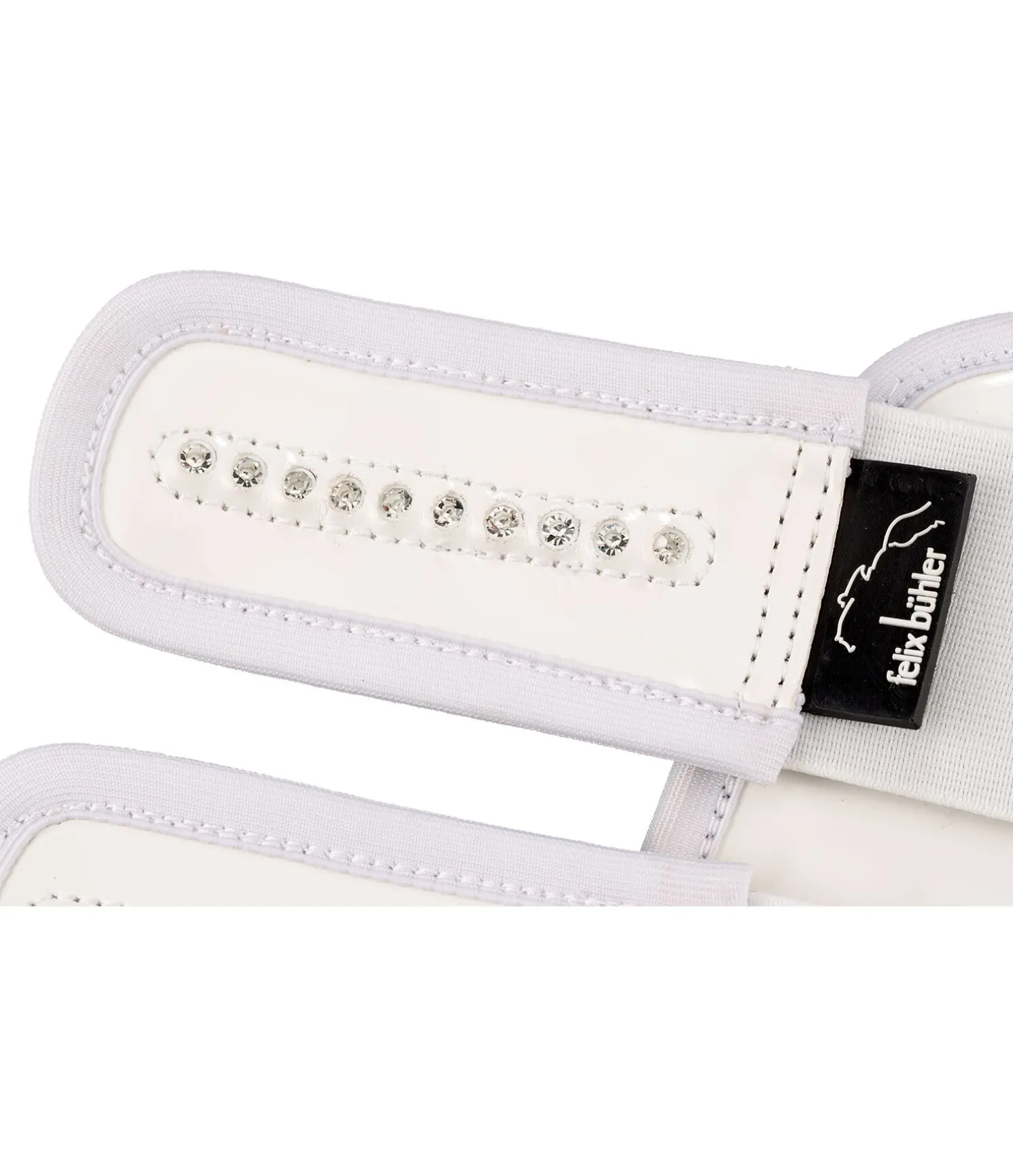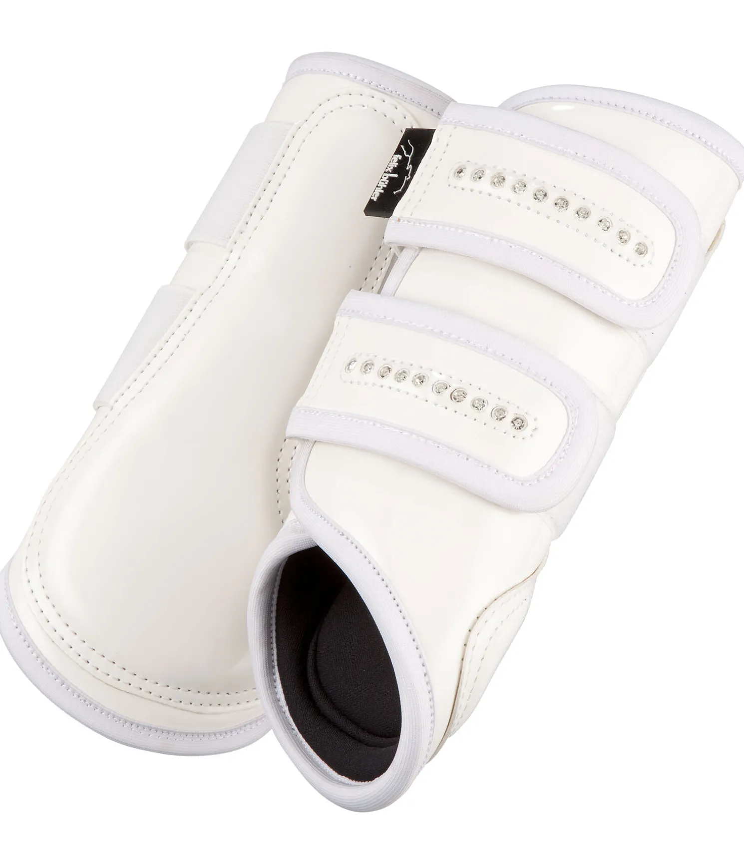 Guêtres anatomiques et élégantes en matière synthétique à l’aspect verni. Avec strass. Doublure intérieure en caoutchouc chloroprène souple pour une protection optimale contre les chocs. Vendues par paire.
