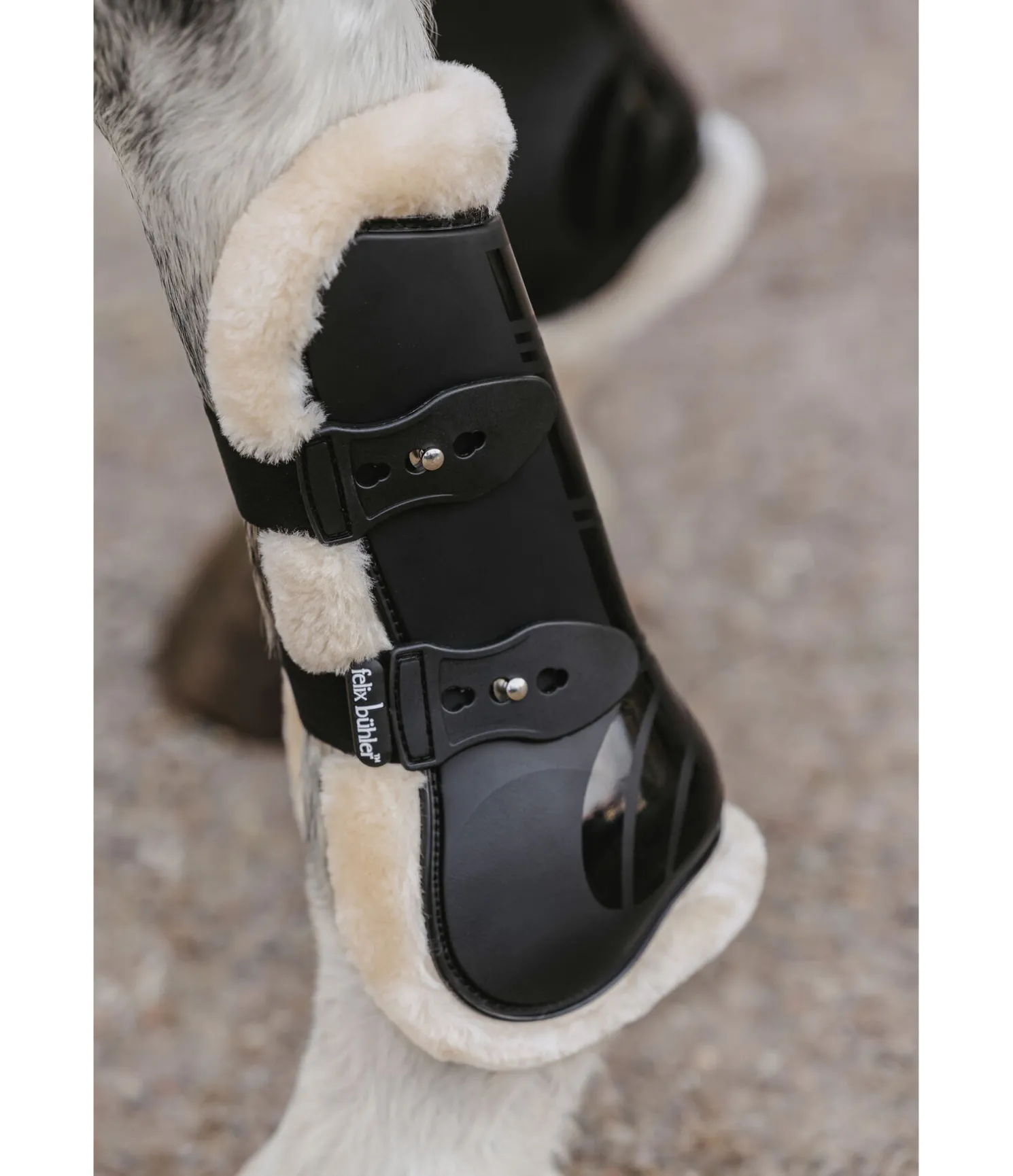 Guêtres Softzone à coque rigide de forme anatomique avec bordure polaire. Pour donner au membre du cheval une liberté de mouvement optimale, même lors du saut. Doublure intérieure en caoutchouc chloroprène souple et système de fermeture rapide. Vendues par paire.