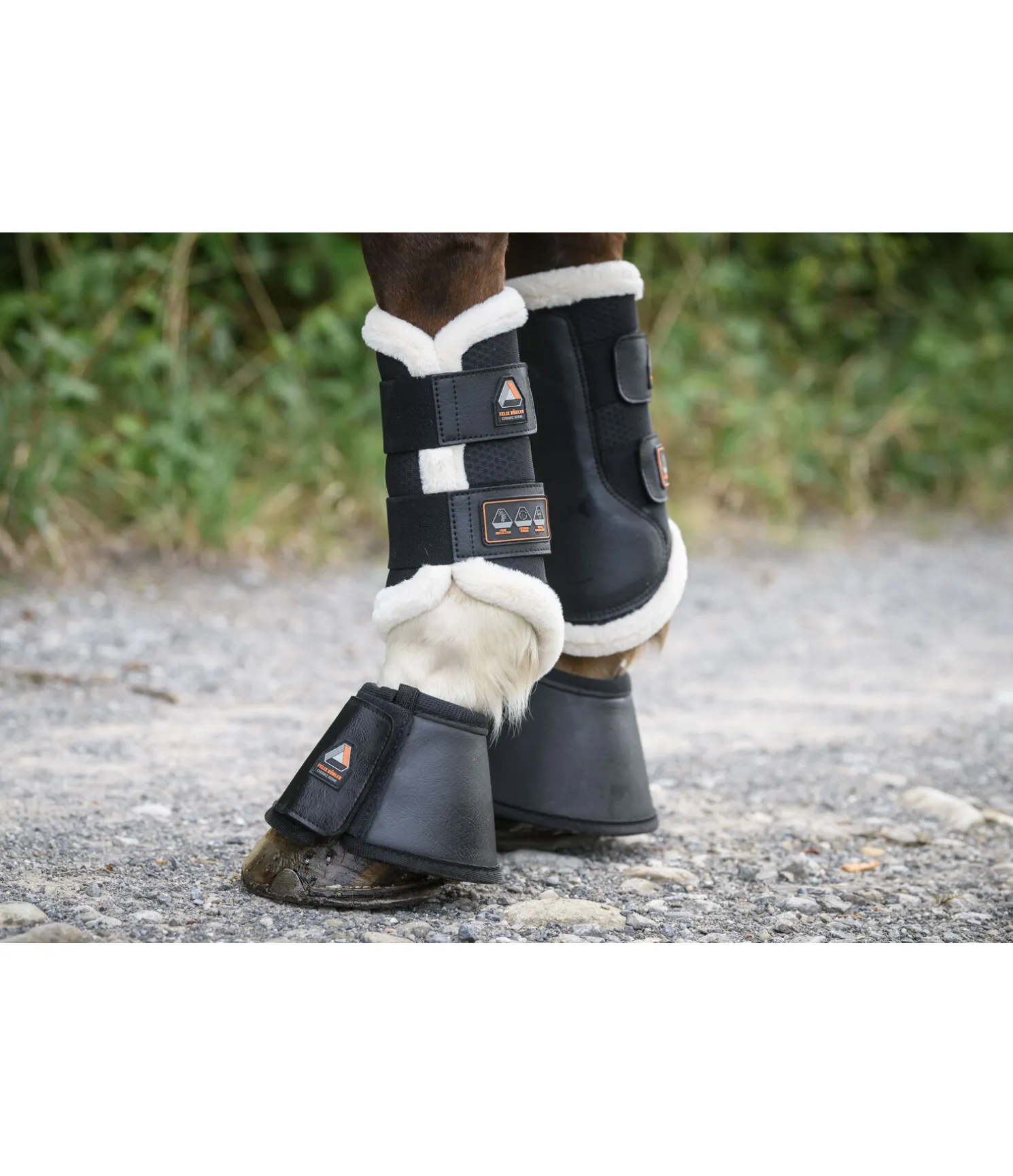 Guêtres anatomiques respirantes pour les antérieurs. Tissu à mailles alvéolées 3D de qualité supérieure qui permet une circulation de l’air optimale évitant l’accumulation de chaleur. La doublure intérieure respirante est en mesh contenant des fibres de céramiques qui réfléchissent la chaleur corporelle sous forme de rayonnement infrarouge, ce qui stimule la circulation sanguine. Les guêtres Ceramic Rehab sont particulièrement adaptées aux chevaux avec des antécédants médicaux et peuvent aider à l’échauffement. (IMPORTANT : elles ne remplacent PAS l’échauffement). Le rembourrage sur l’intérieur de la jambe est en synthétique robuste et lavable et a une fonction anti-chocs. Bordure en polaire Teddy douce pour protéger des frottements et garantir un grand confort. 2 pattes auto-agrippantes avec inserts élastiqués pour un maintien sûr. Robustes et lavables. Synthétique 100 % polychlorure de vinyle (PVC). Polaire Teddy, doublure intérieure et mesh 100 % polyester. Mousse 100 % élastomère thermoplastique. Patte auto-agrippante 100 % nylon.