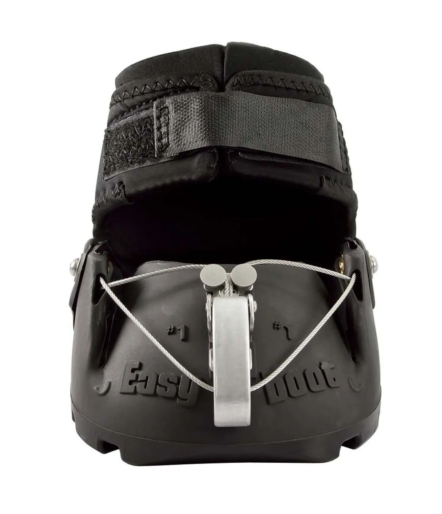 La nouvelle version de l’hipposandale Easyboot Epic intègre 2 améliorations principales. Premièrement, elle reprend le crantage de la semelle des hipposandales Easyboot Glove, car celui-ci copie la forme naturelle du sabot, ce qui permet de faciliter la marche et lui confère une meilleure accroche. Deuxièmement, les bords supérieurs du système de fermeture métallique ont été remplacés par deux éléments métalliques arrondis, pour plus de sécurité dans la pose et l’utilisation et pour accroitre la longévité du fil métallique. Les trois positions de réglage sont toujours existantes. De plus, l’hipposandale Easyboot Epic se démarque par sa robustesse et convient aux conditions particulières, comme par exemple les longues randonnées. Vendue à l’unité.