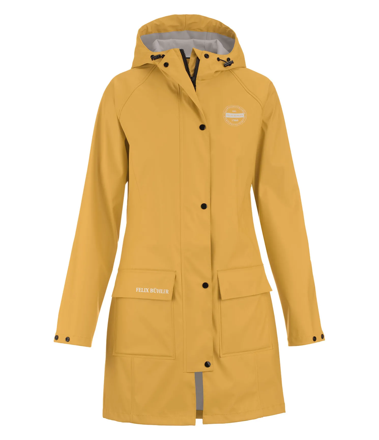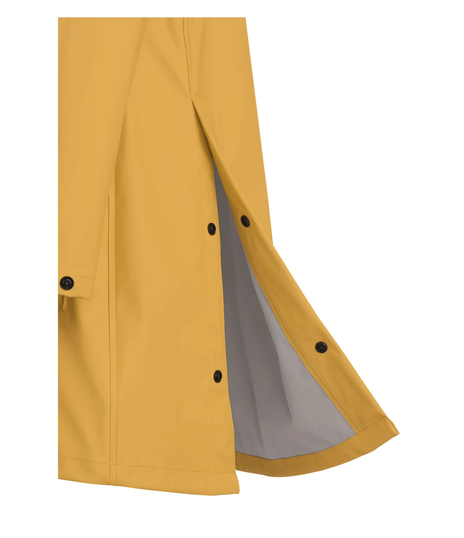 Imperméable (5.000 mm) et coupe-vent d’équitation long. Intérieur de couleur contrastante. Fermeture à glissière double sens dissimulée avec protège-menton. 2 fentes cavalières avec boutons-pression dans le dos. 2 poches à rabat. Capuche et bas des manches réglables. Imprimés réfléchissants à l’avant et l’arrière. 100 % polyuréthane.