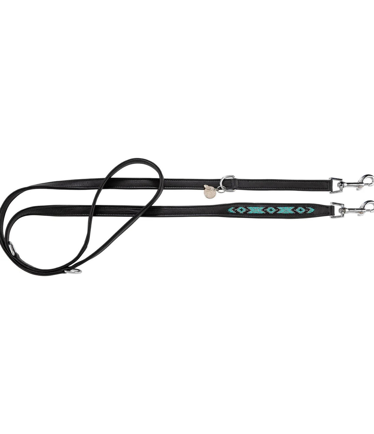 Laisse pour chien en cuir véritable de haute qualité. Motif aztèque en perles. Assortie au collier Nashville (art. 231130). Rembourrage doux en cuir véritable pour une bonne prise en main. Longueur de 200 cm. Anneaux en D permettant un réglage sur 3 positions afin de raccourcir ou de rallonger la laisse pendant la promenade. Bouclerie de couleur argentée.