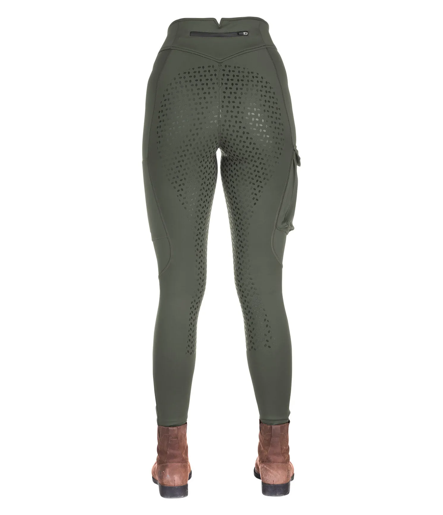 Legging d’équitation confortable avec fond intégral en silicone et taille haute pour un confort optimal. Petite poche zippée plate sur la ceinture à l’arrière du pantalon, poche zippée plate sur la cuisse gauche et poche cargo avec patte auto-agrippante sur la cuisse droite. Avec mousqueton cousu. La matière est très extensible et s’adapte parfaitement à toutes les morphologies, tout en restant suffisamment ferme pour avoir un léger effet sculptant. 71 % polyamide, 29 % élasthanne.