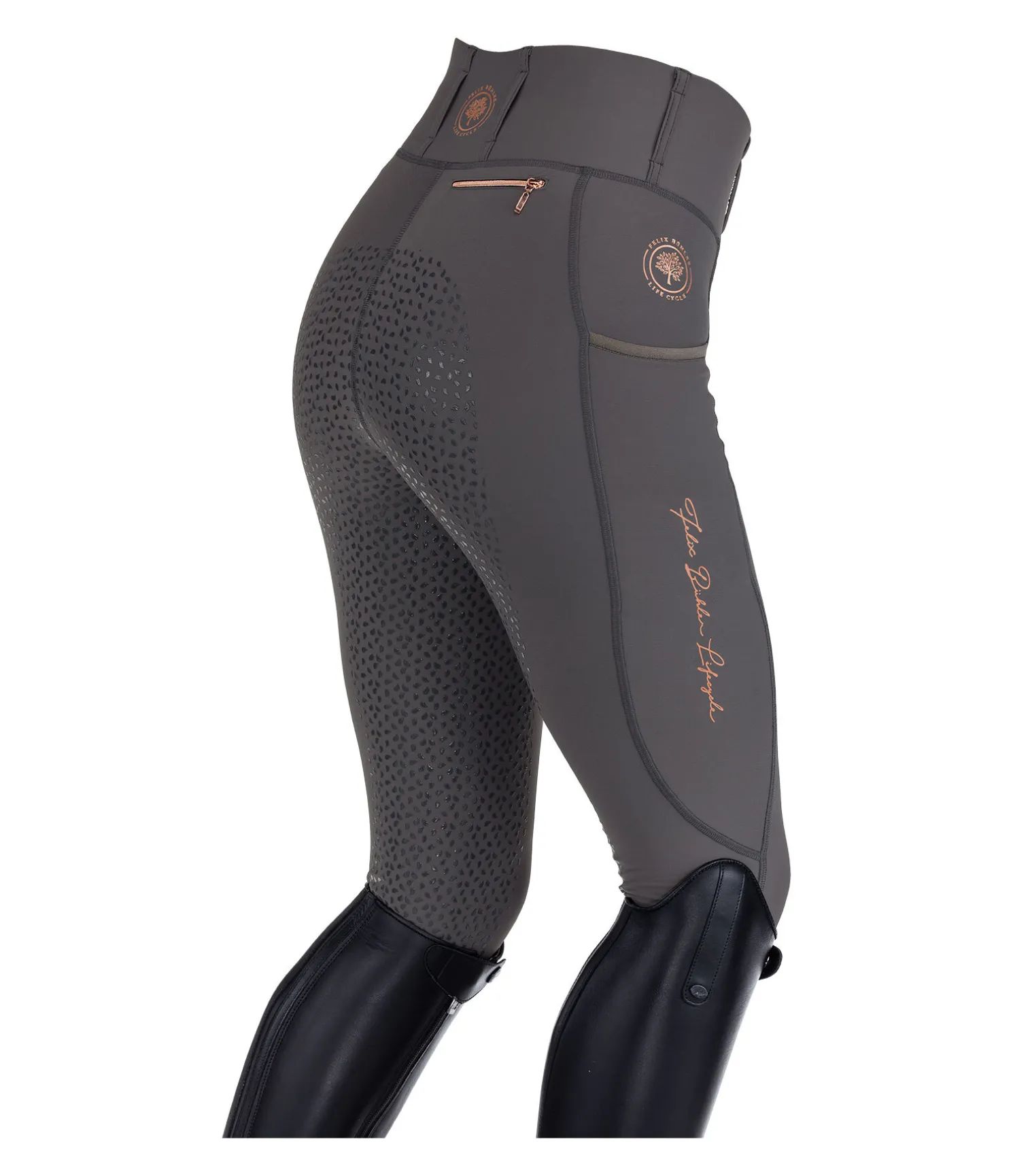 Durable ! Legging d’équitation extrêmement confortable. Fond intégral grip en silicone. Conçu principalement en matière stretch recyclée, extensible dans 4 directions. Ceinture extra large avec passants. Poche zippée arrière et poche latérale pour téléphone portable. Aucune couture au niveau des genoux. Bas de jambe extensible. Imprimé Felix Bühler Life Cycle. 78 % polyamide, 22 % élasthanne.