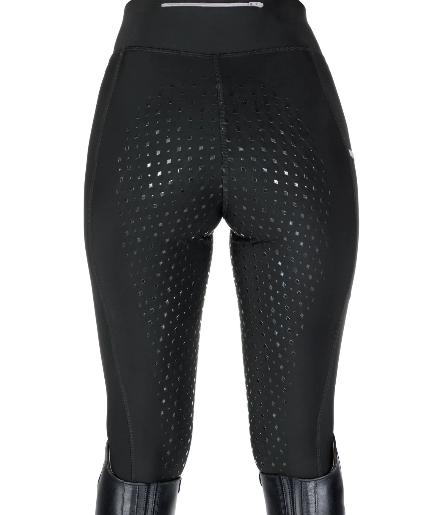 Legging d’équitation confortable. Fond intégral grip en silicone. Matière stretch extensible dans 4 directions. Ceinture extra large. Poche zippée arrière et poche latérale pour téléphone portable. Aucune couture au niveau des genoux. Bas de jambe extensible. Imprimé siliconé Felix Bühler. 90 % nylon, 10 % élasthanne.