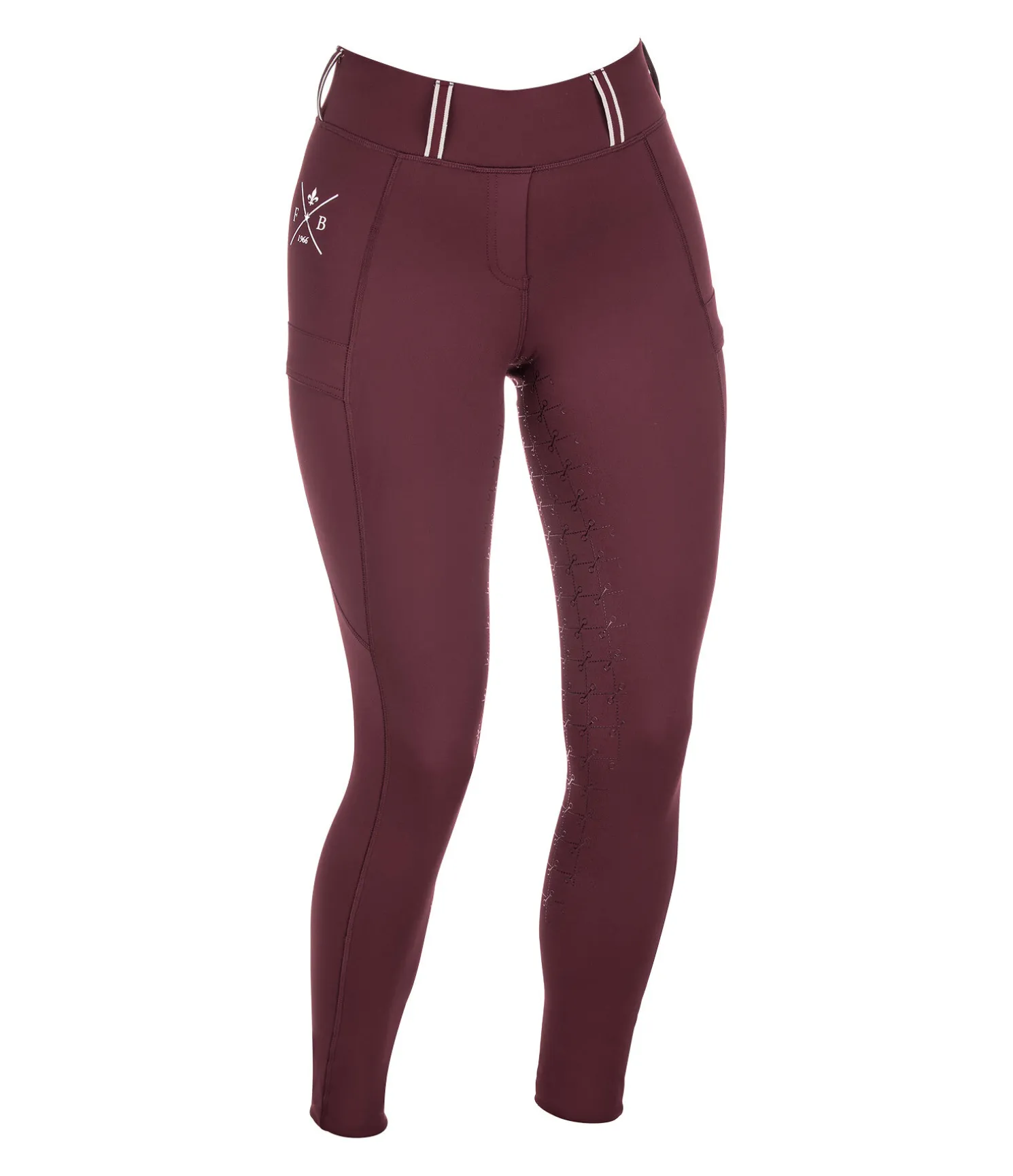 Legging d’équitation sportswear à fond intégral grip en silicone. Matière respirante de grande qualité, extensible dans 4 directions. Séchage rapide. Ceinture extra large avec passants dotés d’une bordure de couleur contrastante. 2 poches latérales pour téléphone portable. Aucune couture au niveau des genoux. Bas de jambe extensible. Imprimés Felix Bühler. 2 fausses poches arrière avec bande scintillante. 85 % nylon, 15 % élasthanne.