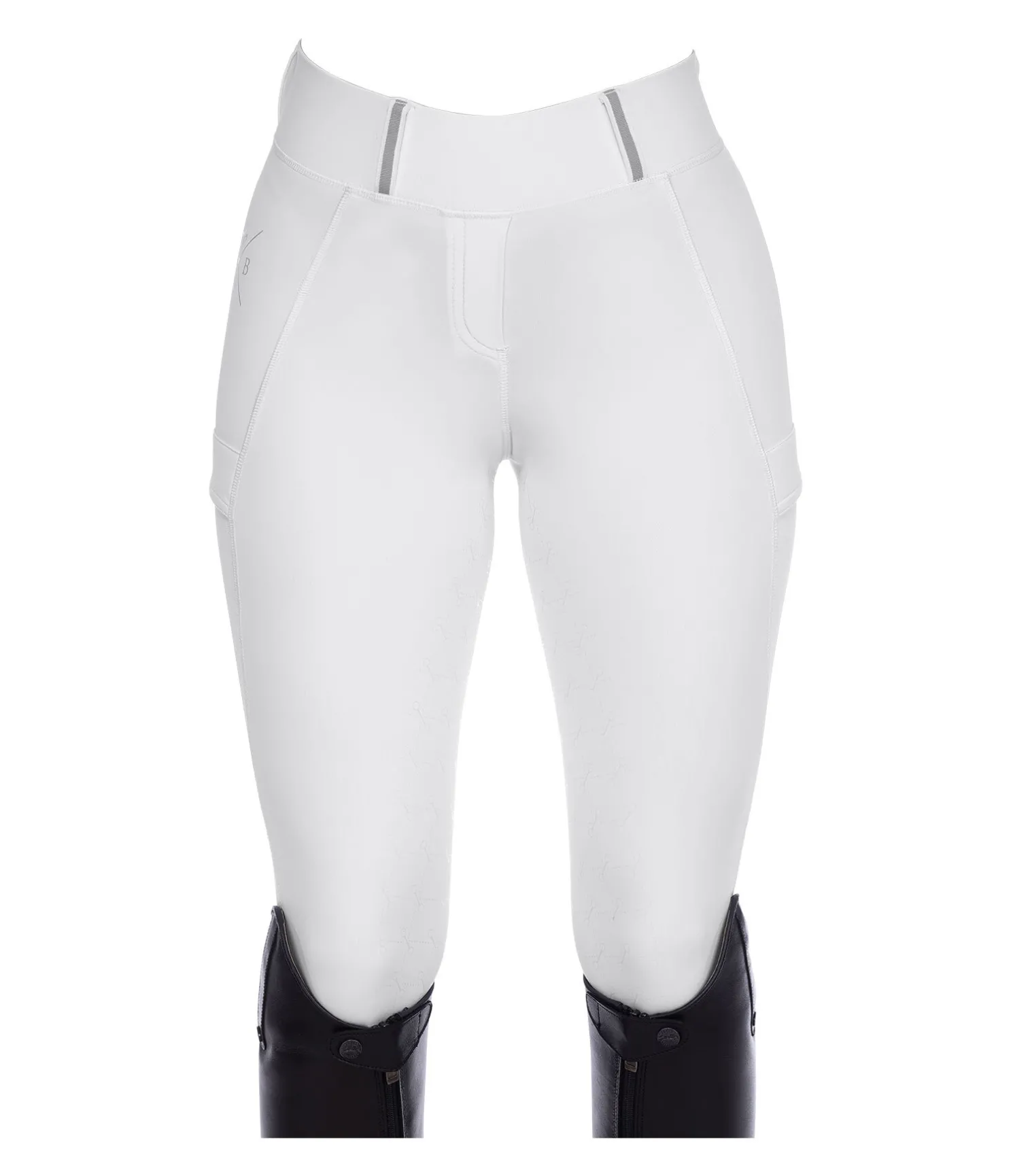 Legging d’équitation sportswear à fond intégral grip en silicone. Matière respirante de grande qualité, extensible dans 4 directions. Séchage rapide. Ceinture extra large avec passants dotés d’une bordure de couleur contrastante. 2 poches latérales pour téléphone portable. Aucune couture au niveau des genoux. Bas de jambe extensible. Imprimés Felix Bühler. 2 fausses poches arrière avec bande scintillante. 85 % nylon, 15 % élasthanne.
