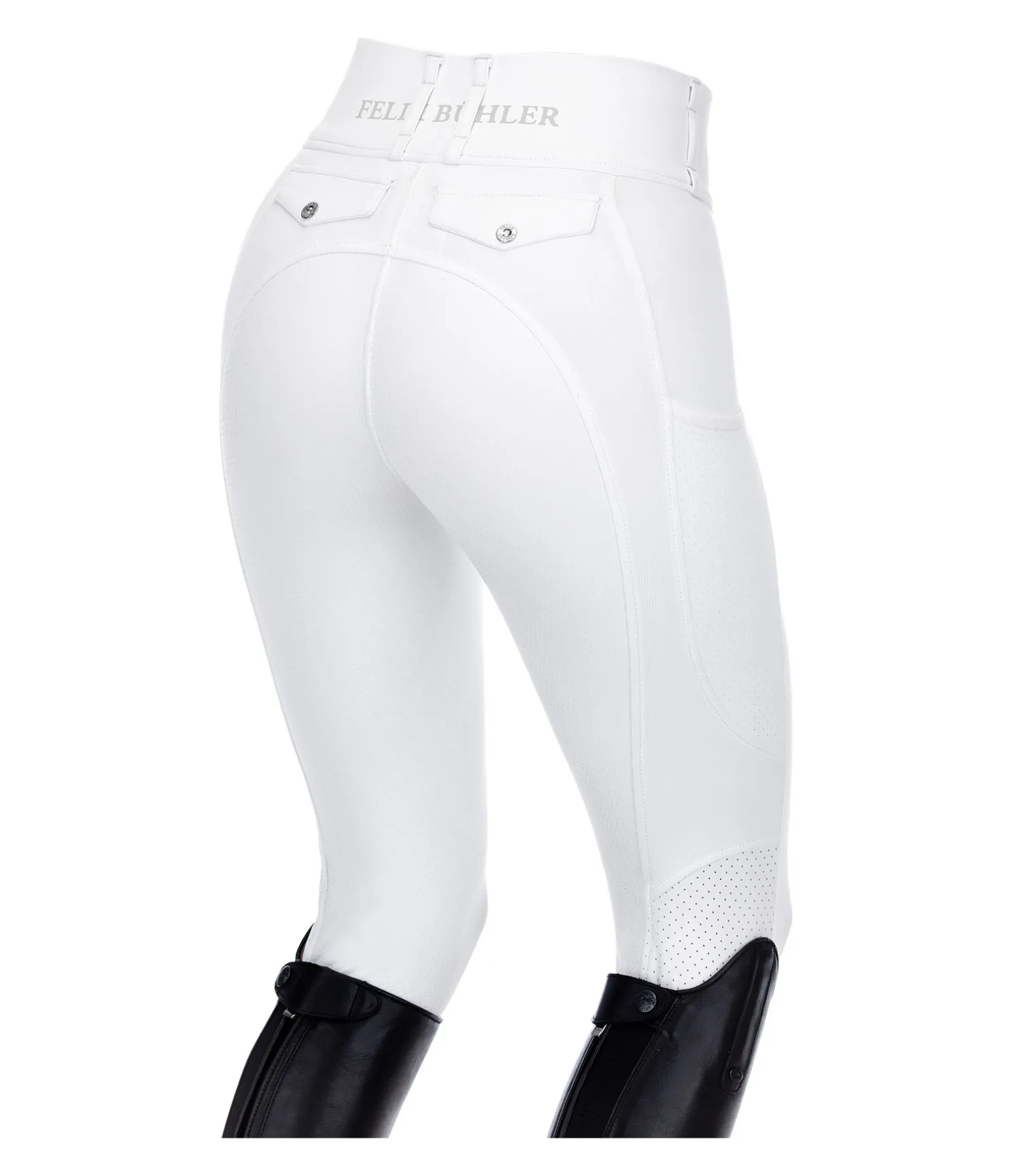 Un indispensable quand il fait très chaud. Legging d’équitation confortable à fond intégral grip en silicone. Stretch extensible dans 4 directions pour un effet sculptant garanti. Matière respirante à séchage rapide. Empiècement ajouré par découpe laser sur la jambe. Large ceinture avec passants. Une poche pour téléphone portable sur chaque jambe. Deux fausses poches arrière. Sans coutures aux genoux. Badges Felix Bühler. 78 % polyester, 22 % élasthanne.