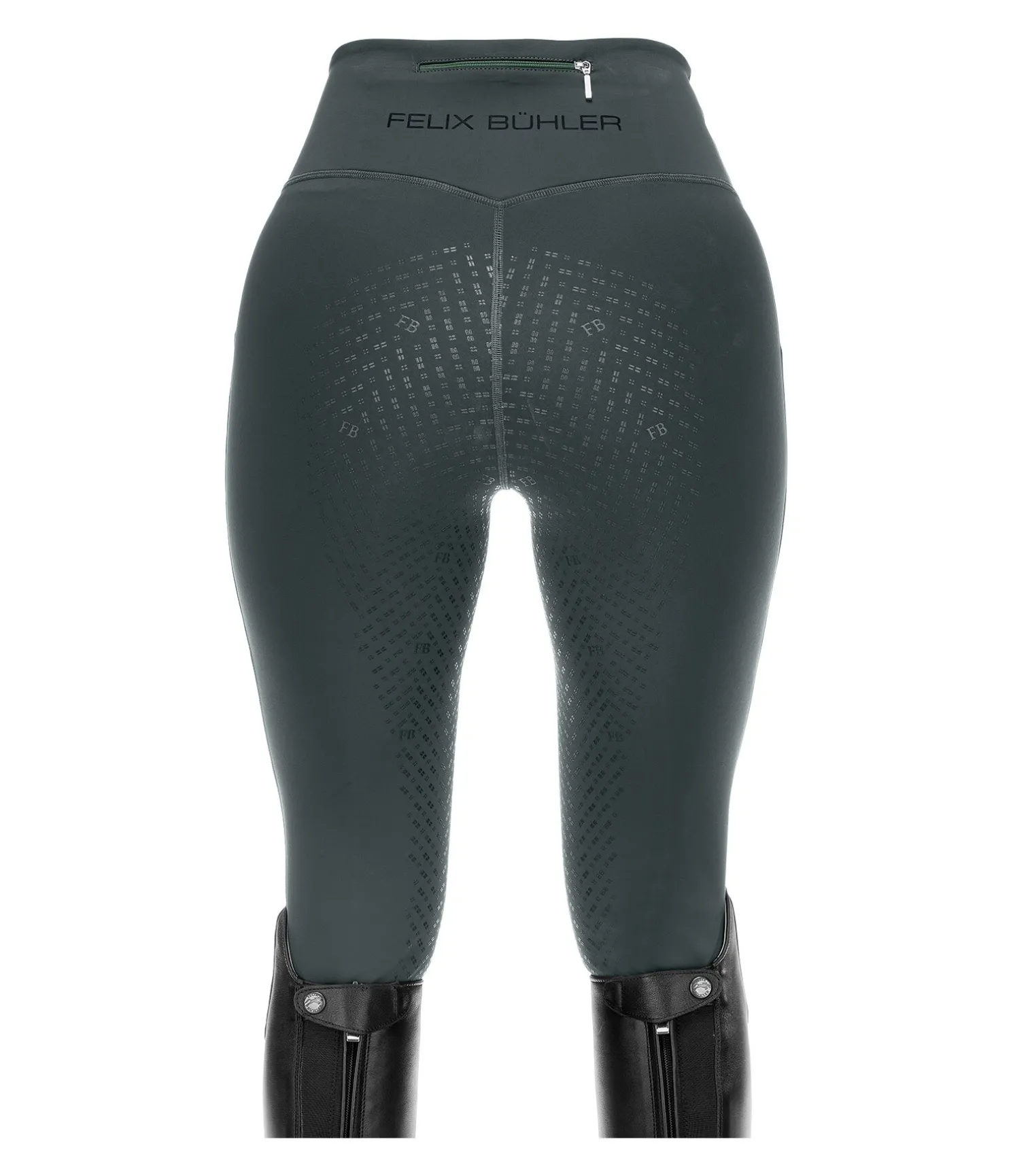 Super legging d’équitation d’hiver en matière stretch douce et extensible dans 4 directions avec fond intégral en silicone. Coupe ajustée. Respirant et à séchage rapide. 2 poches pour téléphone portable, une poche zippée derrière. Imprimés Felix Bühler en silicone, large ceinture avec passants, sans coutures aux genoux, bas de jambe extensible. 78 % polyester, 22 % élasthanne.