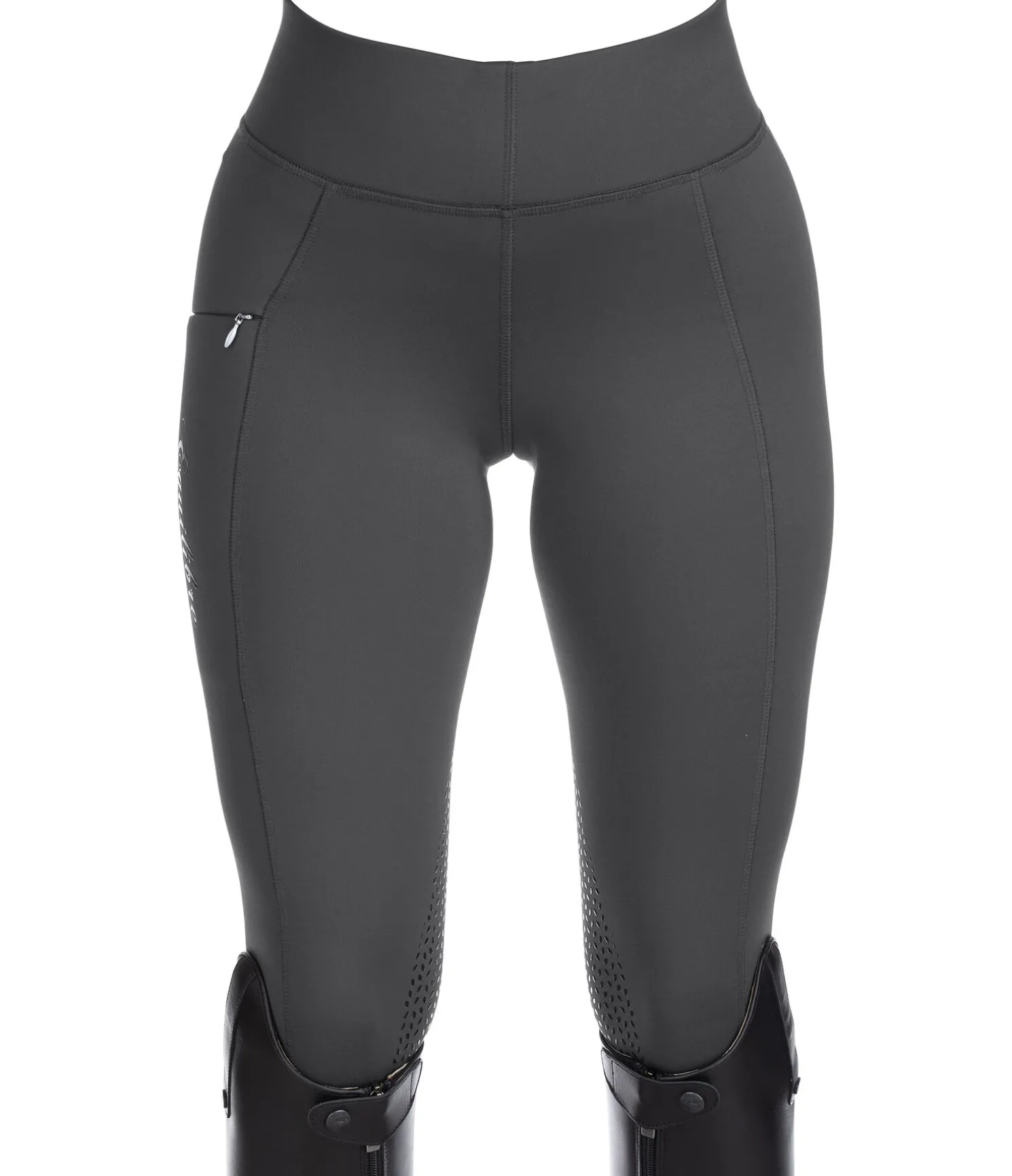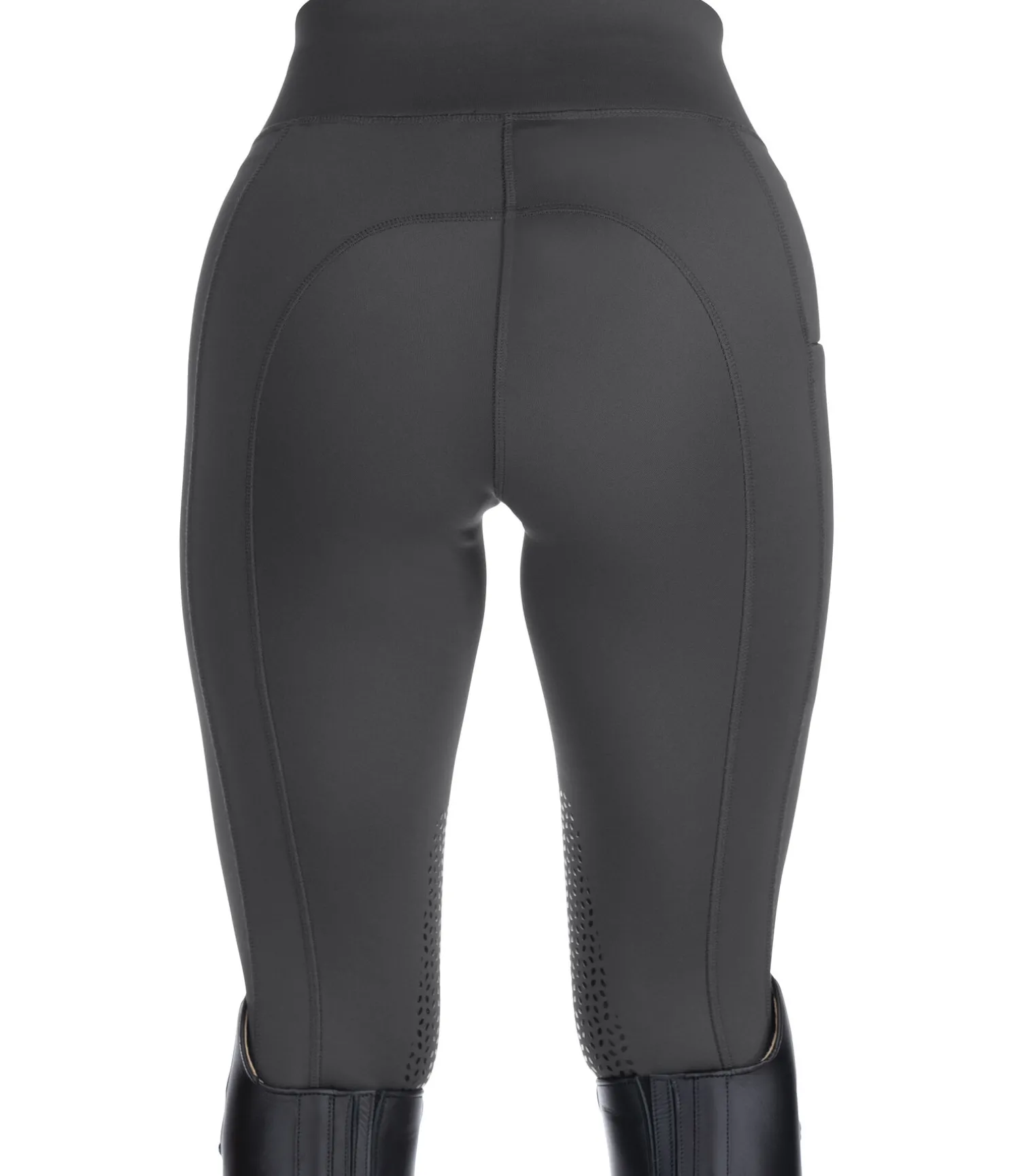 Legging d’équitation avec basanes en silicone. Matière extensible, lisse à l’extérieur et molletonnée à l’intérieur. Ceinture extra large élastiquée. Poche zippée pour téléphone portable sur la cuisse. Bas de jambe extensible sans patte auto-agrippante. 86% polyester, 14% élasthanne.