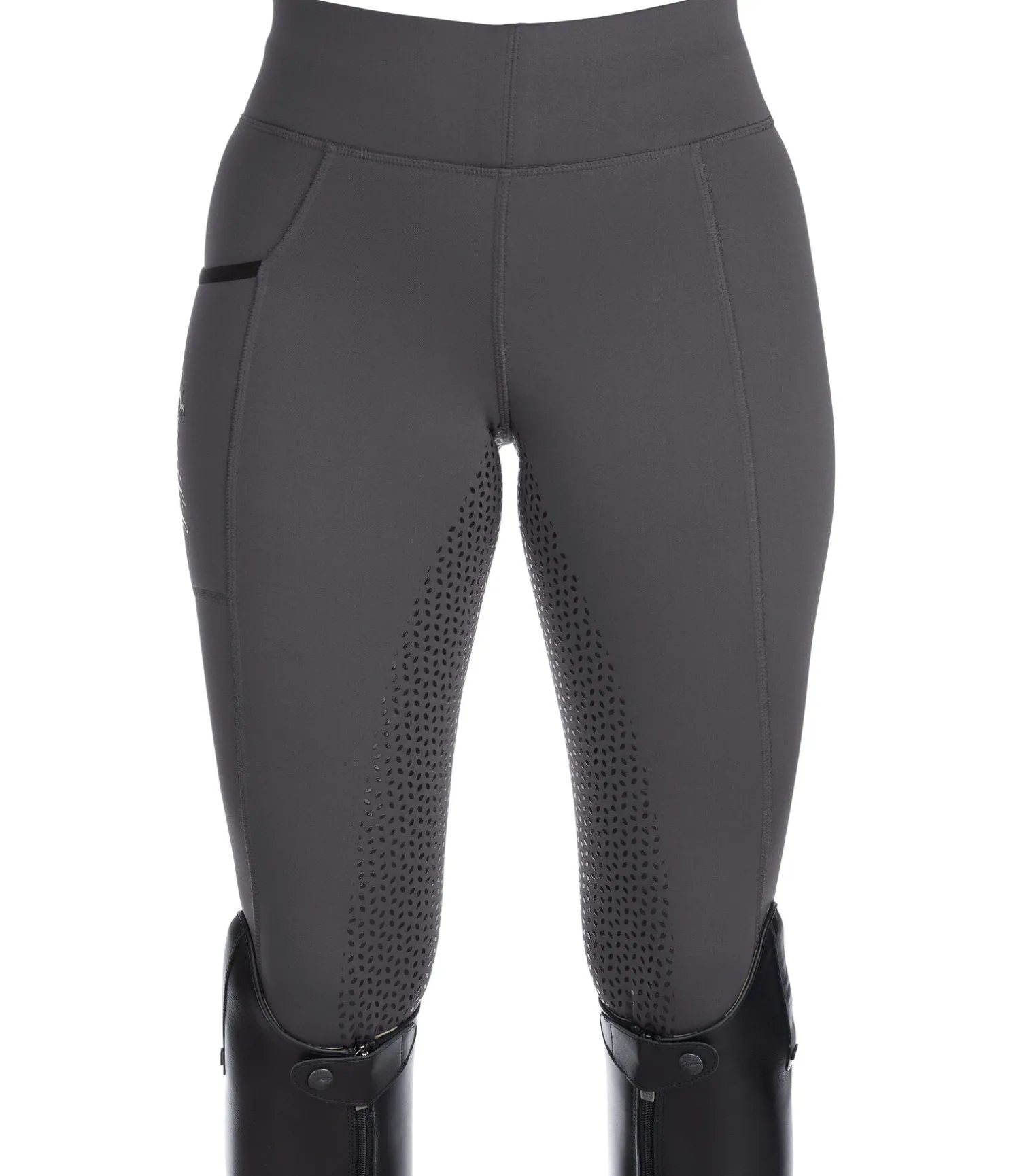 Legging d’équitation chaud pour les froides journées d’hiver ! Fond intégral grip en silicone. Matière stretch douce et souple, extensible dans 4 directions, pour un ajustement parfait. Intérieur confortable. Une poche latérale pour téléphone portable. Ceinture extra large avec poche zippée. 60 % polyester, 30 % polyamide, 10% élasthanne.