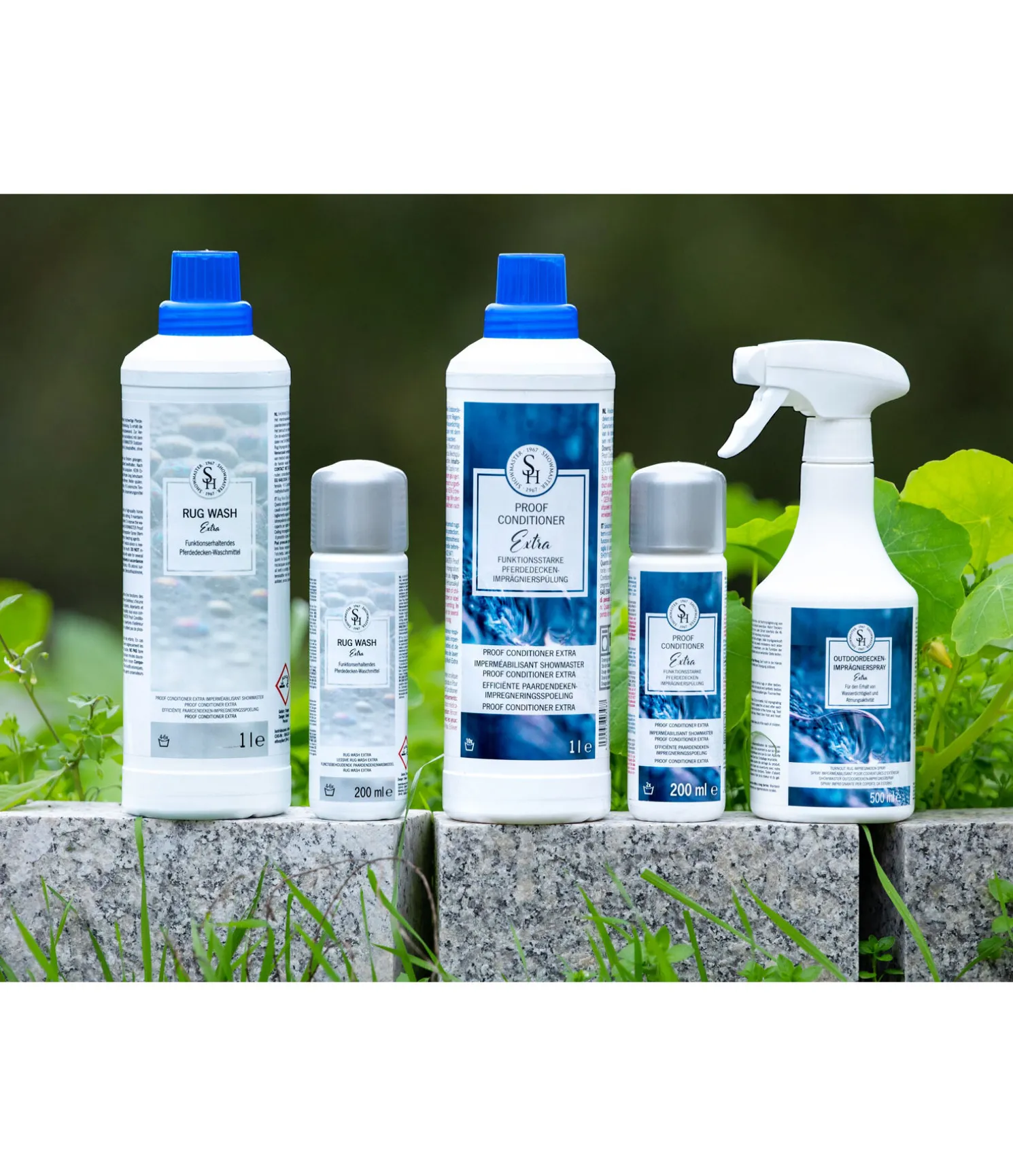 Pour l’entretien et un nettoyage efficace préservant les propriétés techniques de tous types de couvertures pour cheval haut de gamme (couvertures d’extérieur, d’écurie ou séchantes) ainsi que des vêtements d’équitation. La couverture pour cheval est lavée en profondeur sans endommager les fibres sensibles qui constituent tous les tissus textiles respirants, déperlants et anti-salissures. Neutralise les mauvaises odeurs. Grâce à la forte concentration du détergent, le dosage nécessaire est nettement inférieur à celui des détergents pour couvertures classiques, tout en étant efficace aussi à basse température. Son utilisation est donc plus écologique que celle des détergents pour couvertures comparables, pour un meilleur résultat .