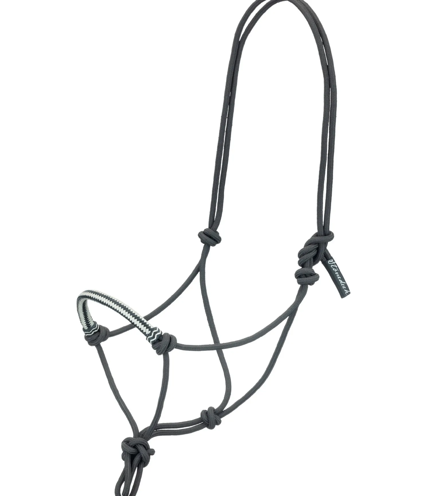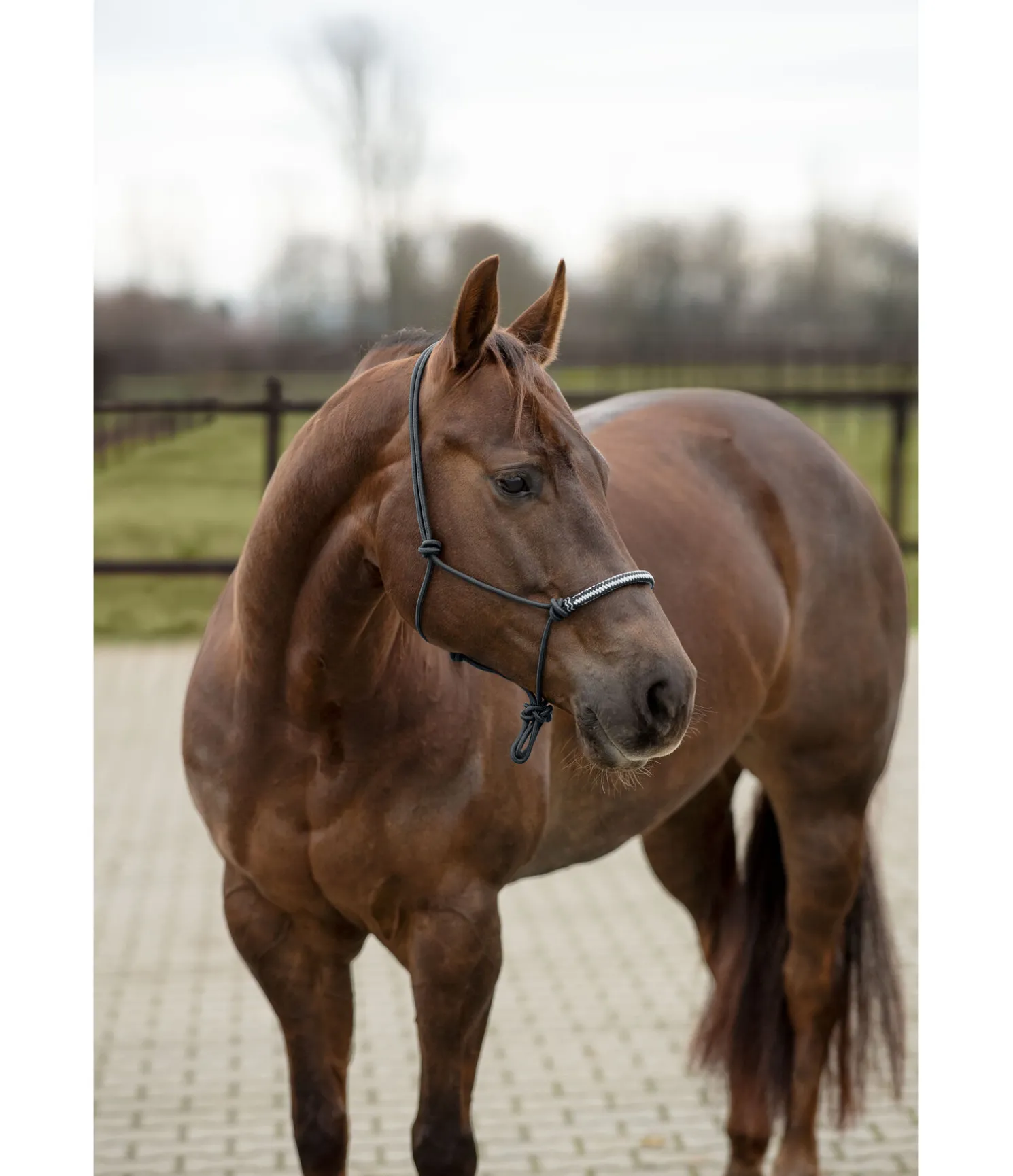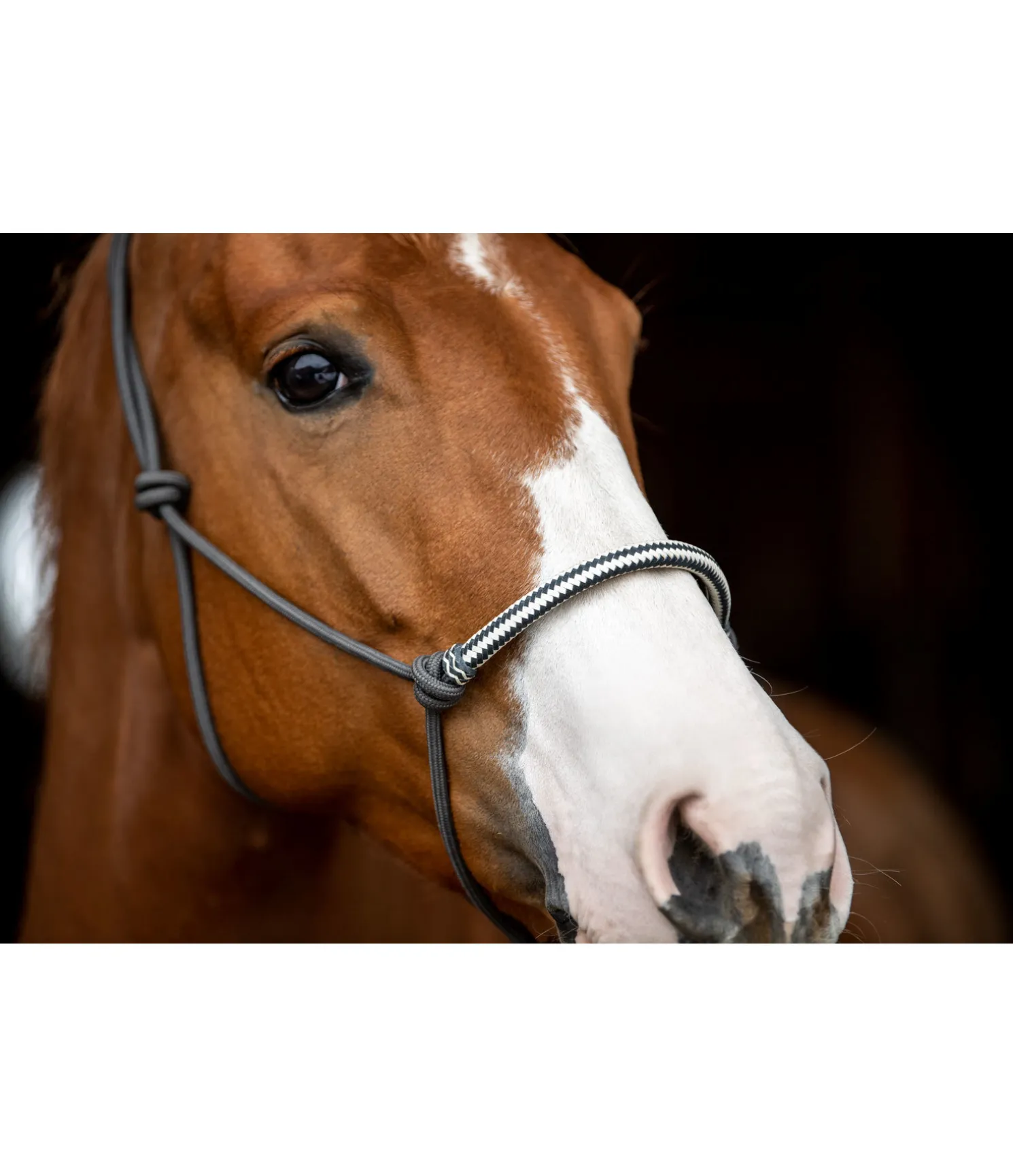Licol à noeuds haut de gamme. Avec muserolle de couleur contrastante en cuir brut. Diamètre 6 mm.