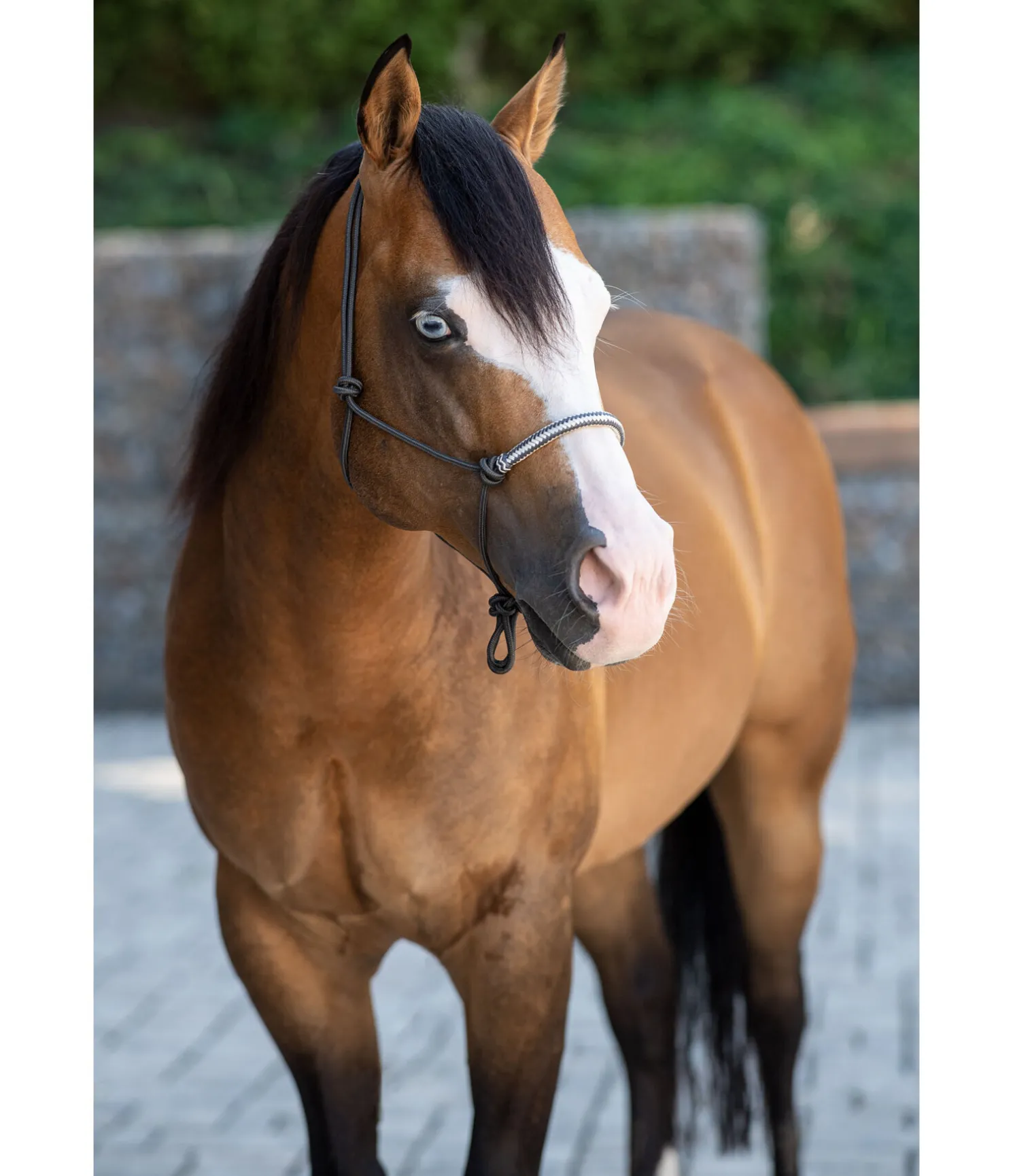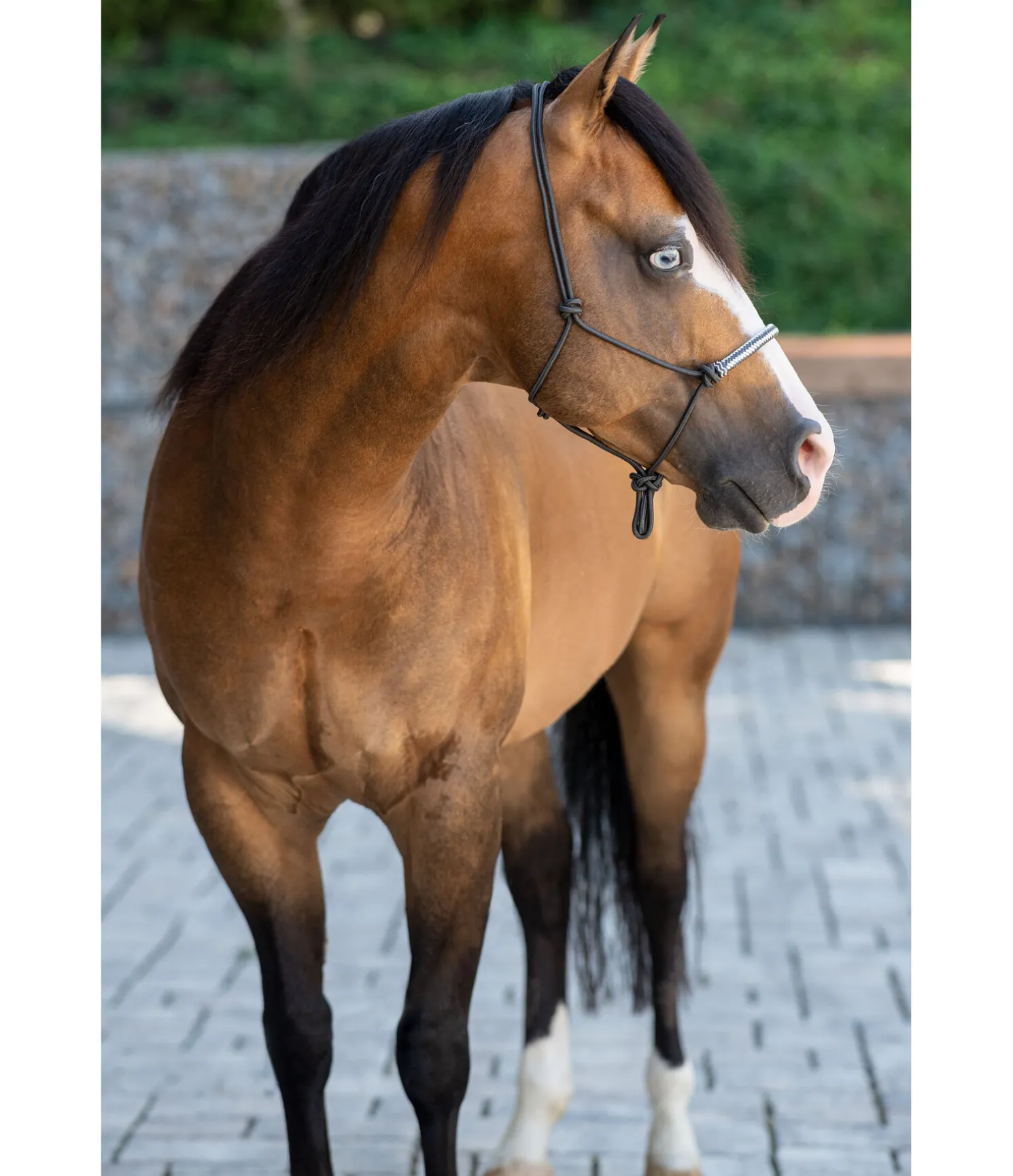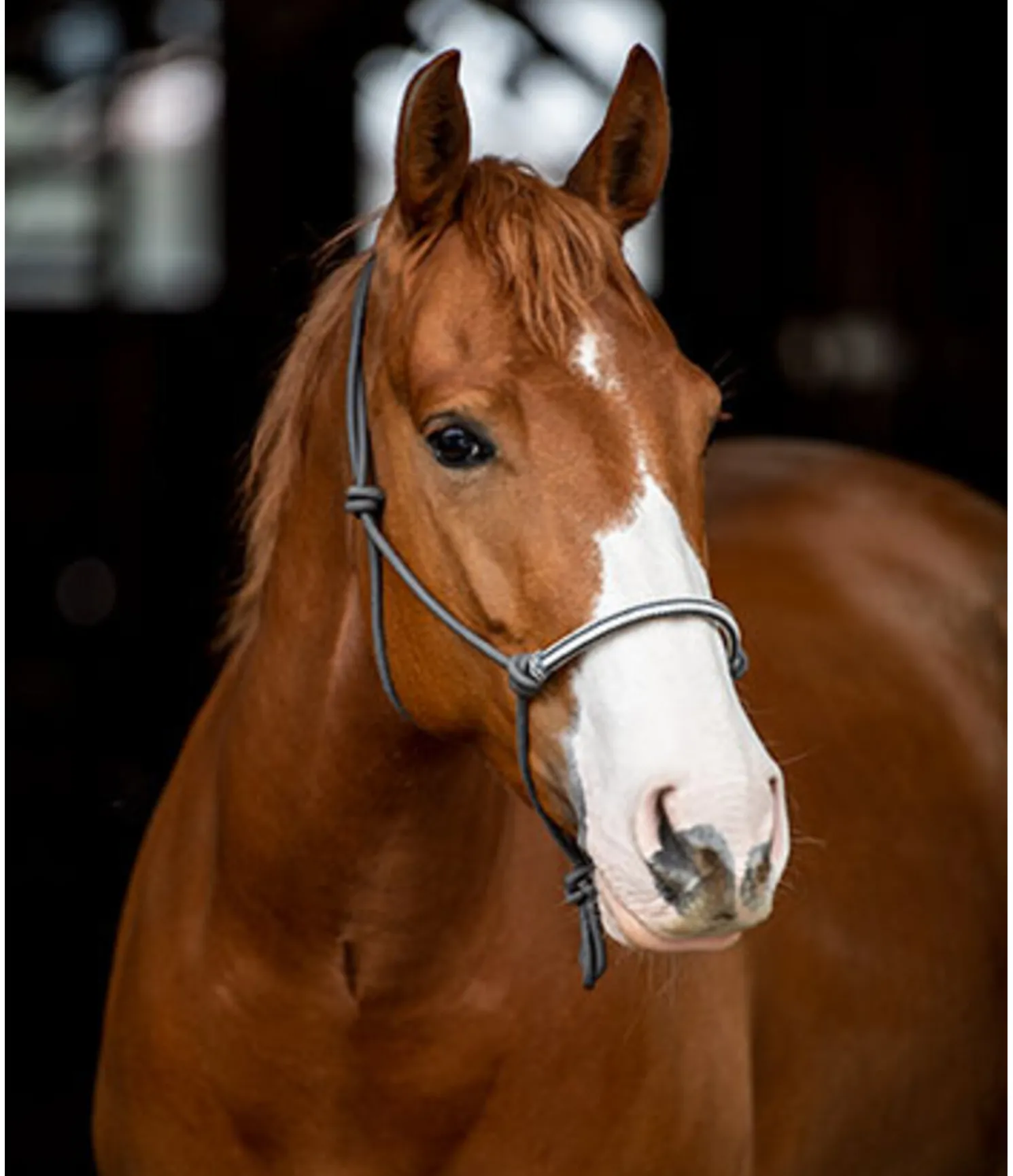 Licol à noeuds haut de gamme. Avec muserolle de couleur contrastante en cuir brut. Diamètre 6 mm.