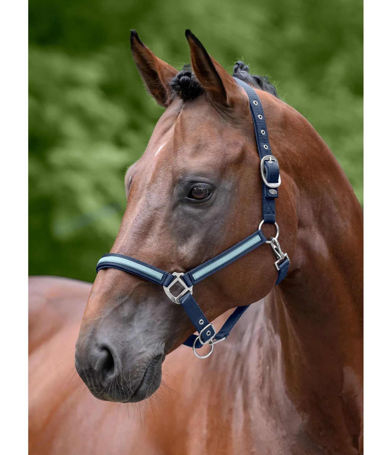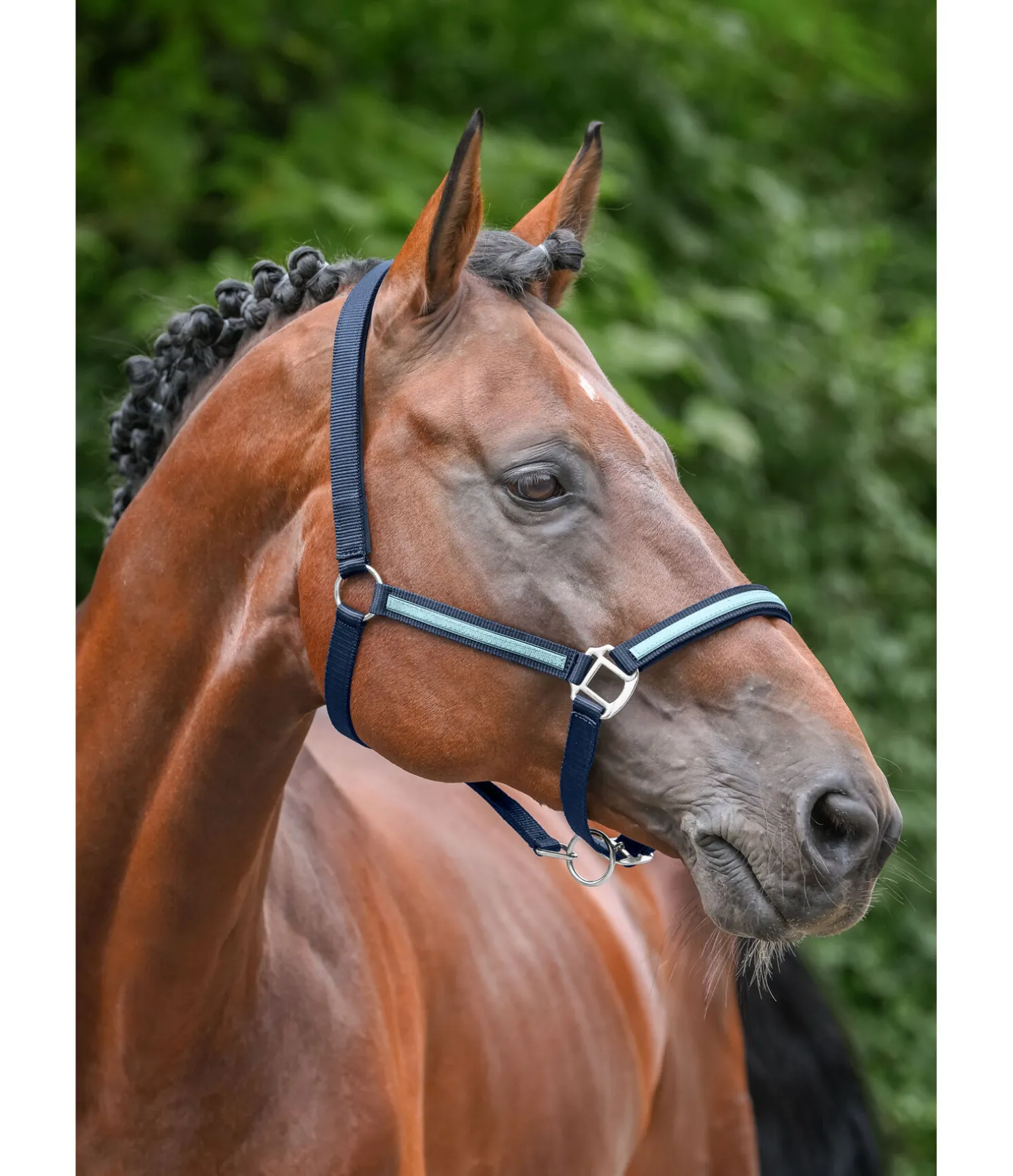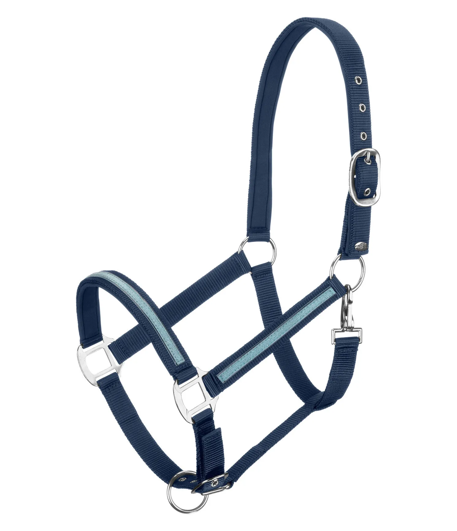Licol tendance avec bande scintillante cousue. Têtière et muserolle avec doublure douce en caoutchouc chloroprène. Têtière et muserolle réglables. 100 % polypropylène.